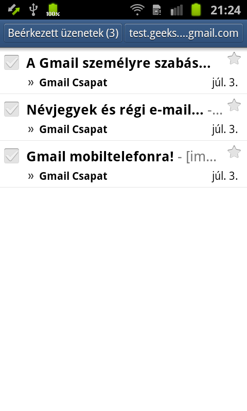 Levelezőkliensből szokás szerint kettőt kapunk: egyet a Gmailhez és egyet minden máshoz, POP3, IMAP és Exchange fiókokhoz. Természetesen a levelező alkalmazással egynél több felhasználói fiókot is kezelhetünk. A mail kliens segítségével létrehozhatunk mappákat a levelek könnyebb rendszerezésére, és arra is van mód, hogy az üzenetek között keressünk.