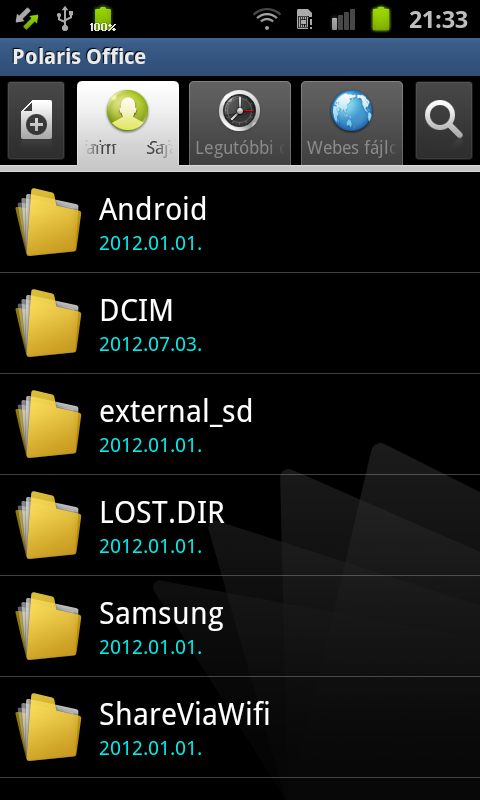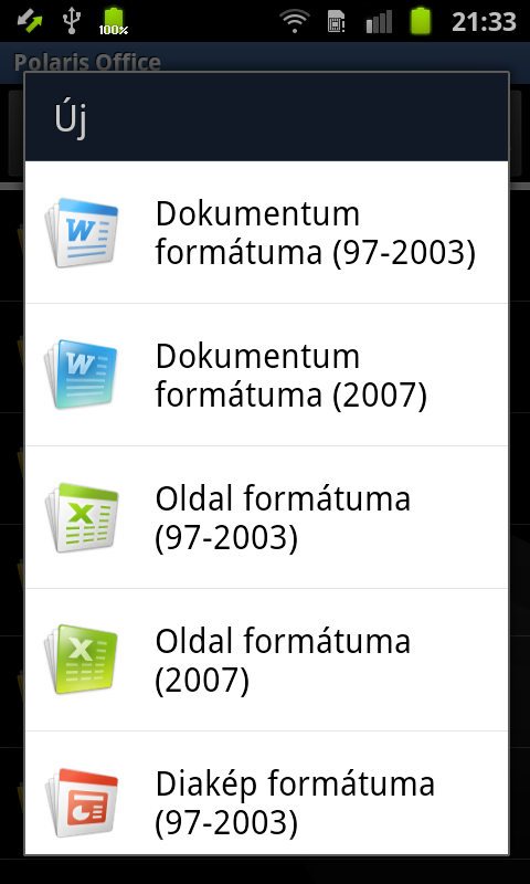 A dokumentumok kezelésére a Polaris Office teljes verzióját kapjuk, amely nemcsak a meglévő Word, Excel és PowerPoint fájlok megnyitására használható, hanem újak létrehozására is.