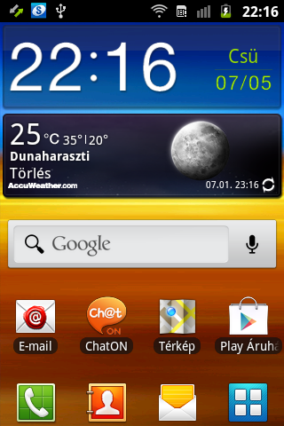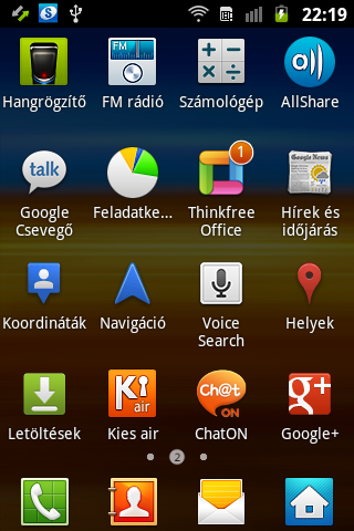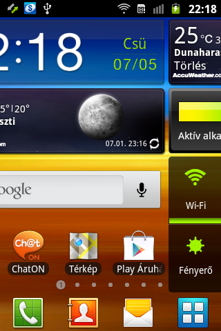Bár a Galaxy Ace Plus nem tartozik a legerősebb modellek közé, a Samsung dicséretére legyen mondva, hogy a kezdőképernyők számával nem fukarkodott, ugyanúgy hetet pakolhatunk tele ikonokkal, mint mondjuk a csúcskategóriás Galaxy S III esetében. A Samsungtól megszokott módon ezúttal is „bal szélső” az elsődleges, ennek azonban túl nagy jelentőséget nem érdemes tulajdonítani, mert a lapozás végtelenített, így az első oldalról balra tovább haladva az utolsóra jutunk.