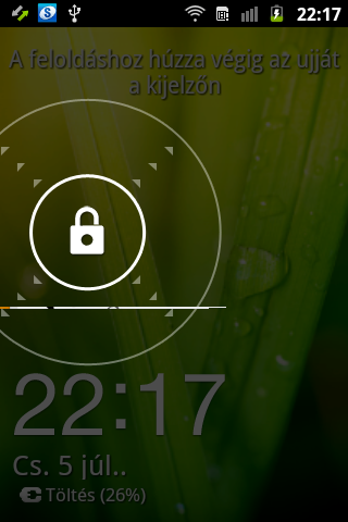 A lezáró képernyő egyszerű darab, alapesetben csak az időt és a dátumot mutatja, plusz információkat csak akkor látunk rajta, ha nem fogadott hívásunk volt vagy üzenetünk érkezett. A telefon feloldására a Samsungtól megszokott módon az oldalsó gombot használhatjuk, amelynek megnyomása után a kijelzőt kell még végigsimítanunk.