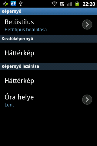 A képernyőkön összesen 4×4 ikonnak van hely, illetve további négy funkció állandó helyet kapott a kijelző alsó részén: a telefon, a névjegyek, az üzenetek és az alkalmazások előhívására szolgáló gombok helye fix, ezek minden kezdőképernyőn megtalálhatók. A kezdőképernyők egyedi funkciója (legalábbis Android 2.3 alatt), hogy lehetőség van mappák használatára is, így az ikonokat akár csoportosíthatjuk is. A felület leggyengébb pontja a widgetek kezelésében rejlik, a kipakoláshoz való felület kis mérete miatt nem használható túl jól. A widgetek száma egyébként 30 körüli, ami nem mondható túlságosan soknak.