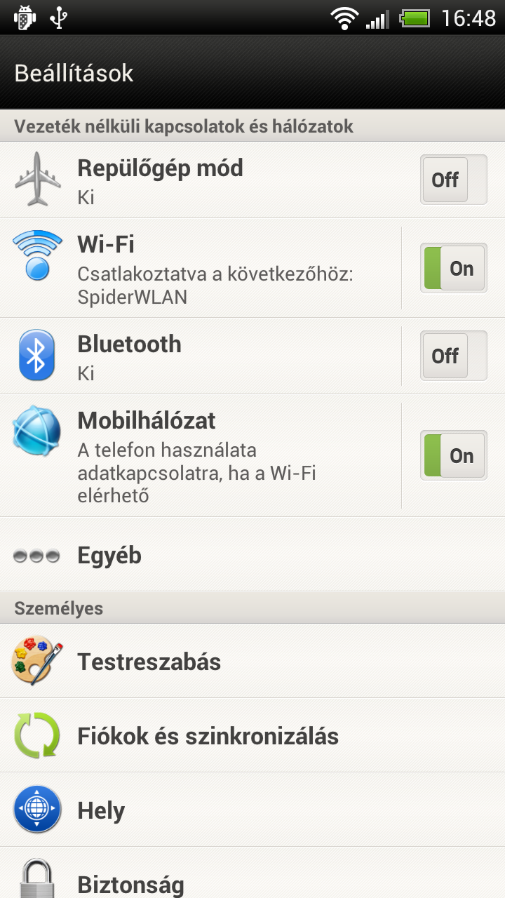 A HTC nem hagyta érintetlenül az értesítési sávot sem: a változtatások nyomán a felület kevésbé zsúfolt lett, legnagyobb részt annak köszönhetően, hogy a tajvani gyártó programozói kidobták innen a kapcsolódási lehetőség aktiválására szolgáló lehetőségeket. Aki ezeket esetleg használta, az sem fogja a hiányt nagyon érzékelni, mert a jobb felső sarokban lévő beállítok gombbal egyből a beállítási menübe juthatunk, amely az Android 4.0 esetében legfelül, tehát gyorsan elérhető helyen tartalmazza ezeket a kapcsolókat.