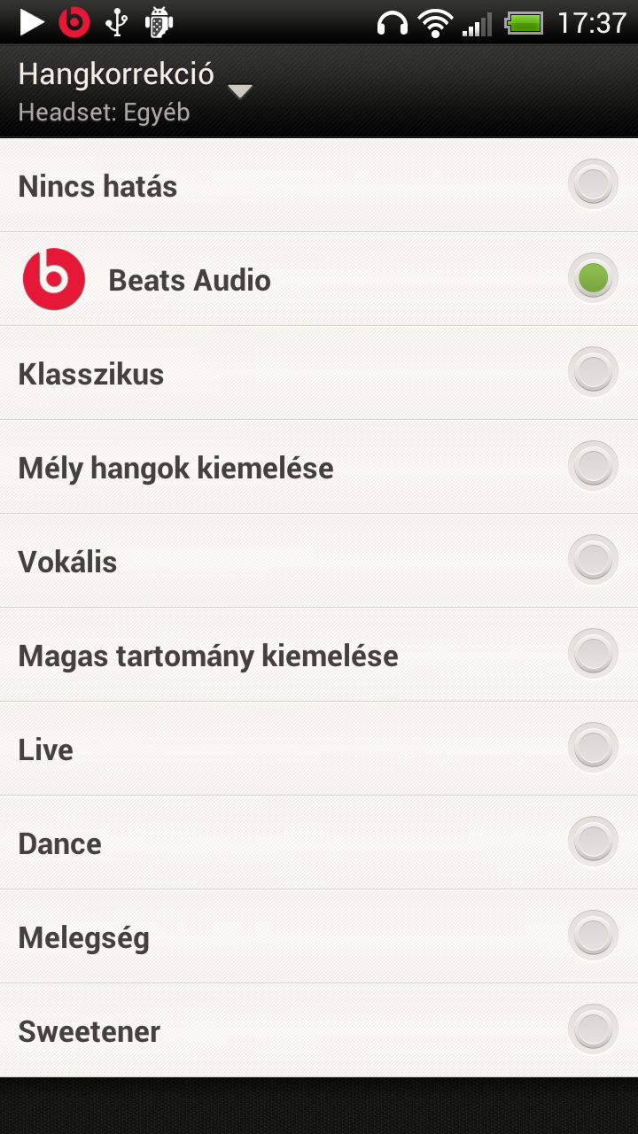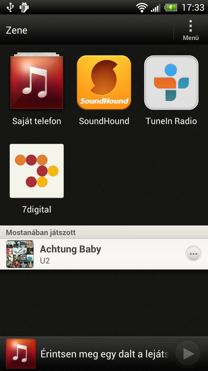 Az igazat megvallva ez utóbbi hangminőségétől nem voltunk elájulva, bár kétségtelen, hogy a mélyhangkiemelés megteszi a hatását, főleg akkor, ha a mobilt jellemzően menet közben, az utcán hallgatjuk. Saját beállításokat nem használhatunk viszont, így az 5 beats audio és a 8 egyéb profil közül kell tudnunk választani (természetesen van „ki” opció is). Amennyiben működik a zenelejátszó, a HTC-től megszokott módon a zene widget a lezáról képernyőn is látszik – és természetesen használni is tudjuk. Sőt, ha behúzzuk a feloldó gyűrűbe, akkor feloldva a telefont egyből a Music appban találjuk magunkat. A beállítások között a hálózaton elérhető DLNA klienseket is megkereshetjük, illetve csatlakozhatunk Bluetooth hangszórókhoz is.