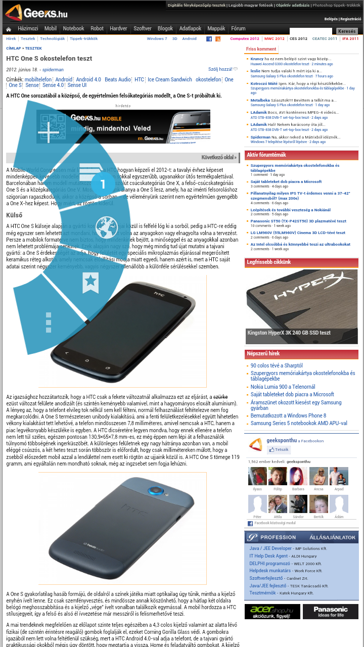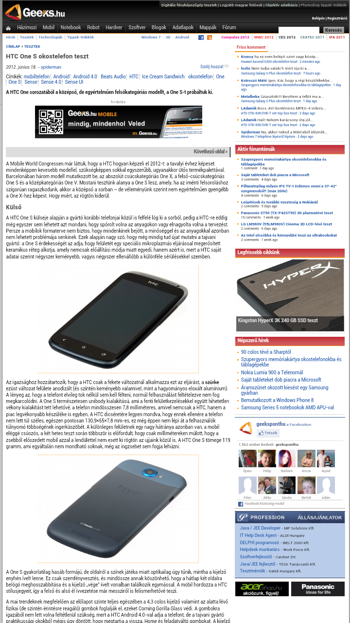 A HTC One X-et a HTC-től kaptuk tesztelésre, ára kb. 160 000 forint.