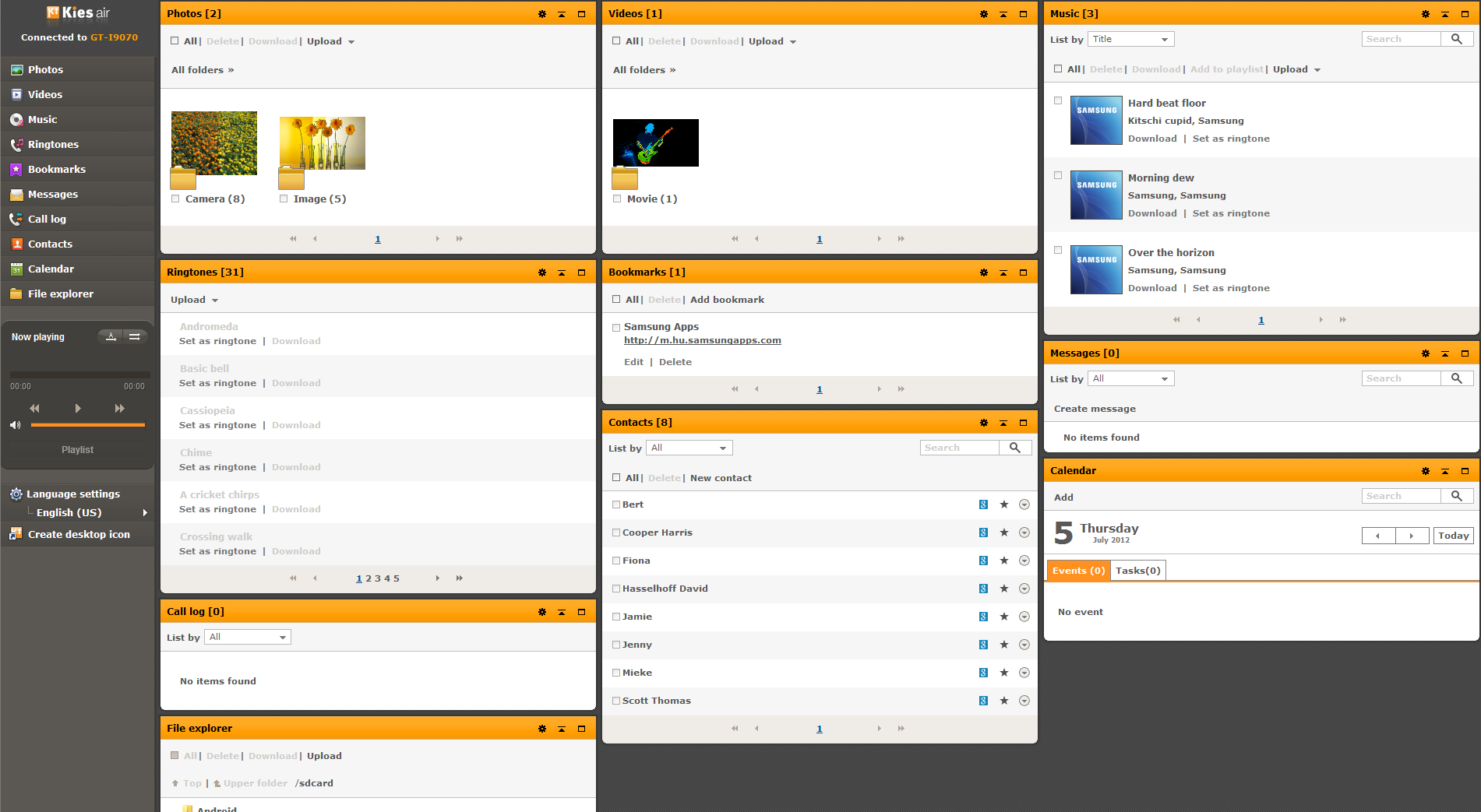 Érdemes ezeken kívül megemlíteni még a Hírek és időjárás programot, valamit a Kies Air alkalmazást is – ez utóbbi lehetővé teszi, hogy a telefonra a helyi hálózaton lévő számítógép böngészőjéből kapcsolódjunk, így a rajta lévő adatok kezelését USB kábel nélkül is megoldhatjuk. Ez elsősorban akkor lehet hasznos, ha a telefon kábelét nem akarjuk magunkkal vinni, de esetenként előfordul, hogy mondjuk a munkahelyen szeretnénk egy-egy zenefájlt vagy fotót a mobilra felmásolni. Néhány hasznos app csak widgetként él a mobilon: ilyen például a fényképező LED-jét vezérlő, a telefonból tulajdonképpen méregdrága zseblámpát csináló Assistive Light is.