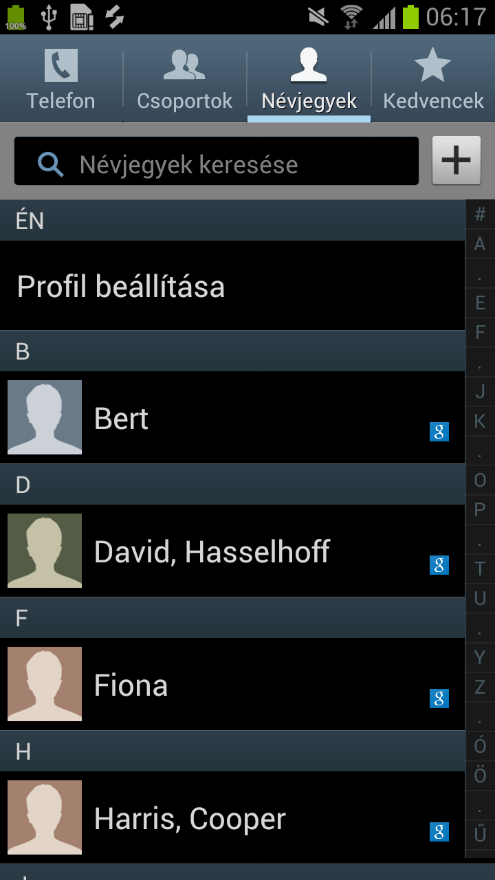 A többi androidos készülékhez hasonlóan a beírt betűkből, számokból a ténylegesen hívni kívánt ismerőst kitaláló Smart dial is megtalálható a mobilban, de a névlistában a TouchWiz felületnél megszokott ötletes extrákat is használhatjuk: egy kontakt nevén balra húzva az ujjunkat SMS-t küldhetünk, jobbra húzva felhívhatjuk, ha pedig a csatolt képre kattintunk, akkor egy gyorsmenü ugrik fel, további opciókkal. Az SMS/MMS üzenetek tárolására és megjelenítésére a mobil az Androidnál megszokott párbeszédes formát használja. Hívások fogadásakor a Samsungtól megszokott módon arra is van mód, hogy egy SMS kíséretében utasítsuk el a beérkező hívást.