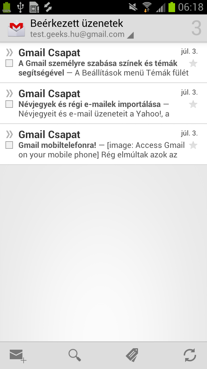 Levelezőkliensből szokás szerint kettőt kapunk: egyet a Gmailhez és egyet minden máshoz, POP3, IMAP és Exchange fiókokhoz. Természetesen a levelező alkalmazással egynél több felhasználói fiókot is kezelhetünk. A mail kliens segítségével létrehozhatunk mappákat a levelek könnyebb rendszerezésére, és arra is van lehetőség, hogy az üzenetek tartalmában keressünk.