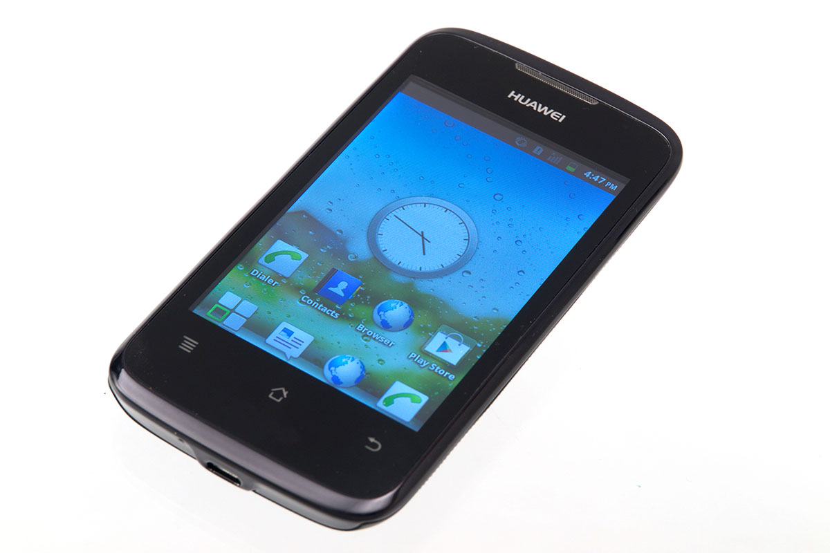 A kijelző, amint az előző oldalon már említettük, 3,5 colos. Felbontása 320×480 pixel, ami ekkora méretben már nem valami sok, azonban a kijelzővel nem is ez a legnagyobb gond, hanem az, hogy fényereje nem túl nagy – az biztos, hogy egy verőfényes nyári napon árnyékba kell húzódnunk, ha használni szeretnénk a telefont. A színek és a betekintési szögek viszont rendben vannak, ami annak köszönhető, hogy a Huawei IPS panelt épített a mobilba.