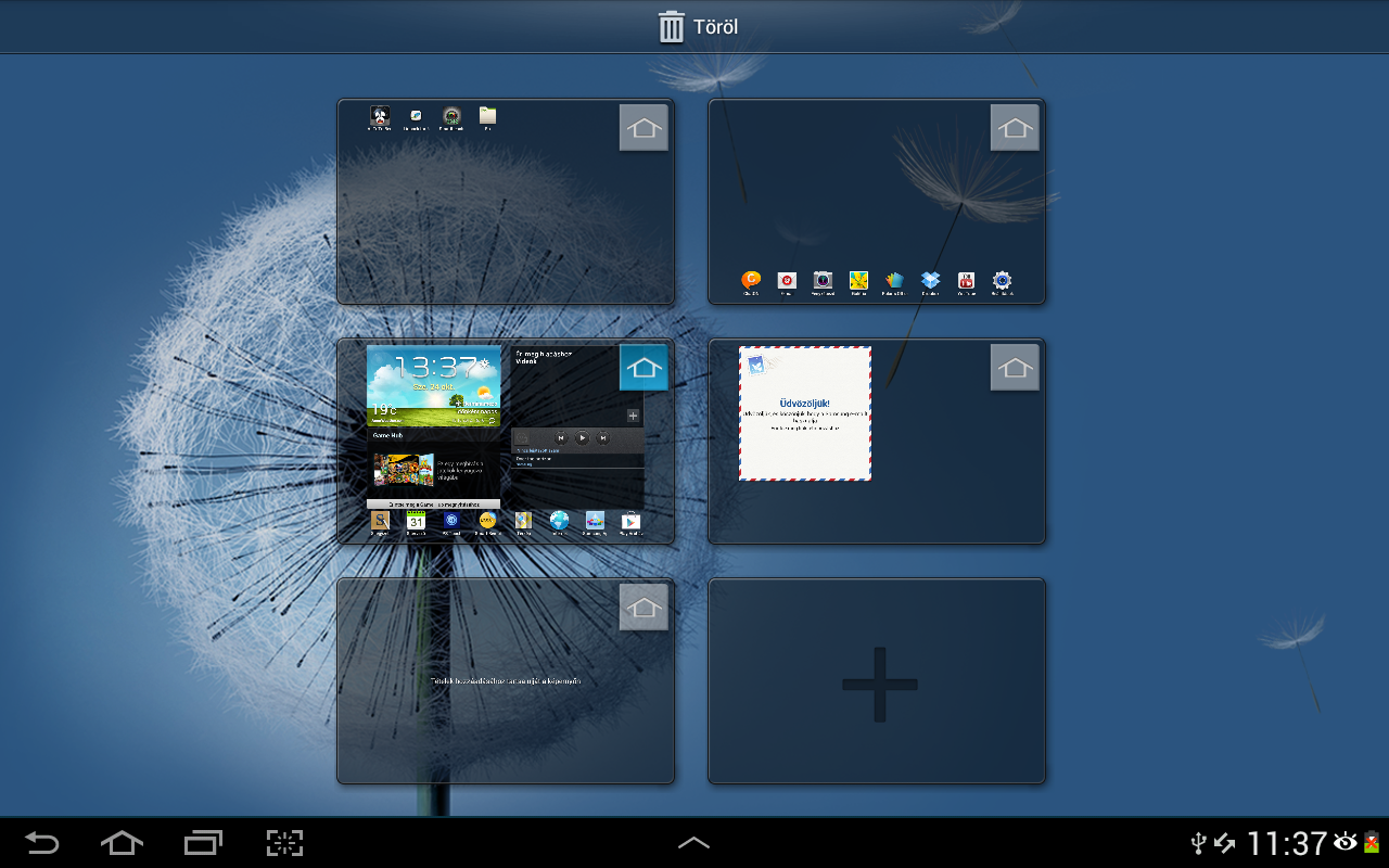 Kezdőképernyőből alapesetben ötöt kapunk, ezek számát viszont bármikor megváltoztathatjuk – de legfeljebb hetet használhatunk. A kezdőképernyők között a lapozás állított és fektetett helyzetben is szépen, simán történik, a görgetés pedig végtelenített, azaz az utolsó képernyőről továbbhaladva az elsőn lyukadunk ki. Alapesetben a középső képernyő az elsődleges, de a kijelzők rendezésére szolgáló átmeneti nézet segítségével ezen változtathatunk, csakúgy, mint a kijelzők sorrendjén. Bármelyik képernyőn is vagyunk, a pozíciónkat apró pontok jelzik. A pontok száma értelemszerűen éppen annyi, amennyi kezdőképernyőt használunk, és természetesen arra is lehetőség van, hogy a megfelelő pont megérintésével rögtön valamelyik képernyőre ugorjunk.