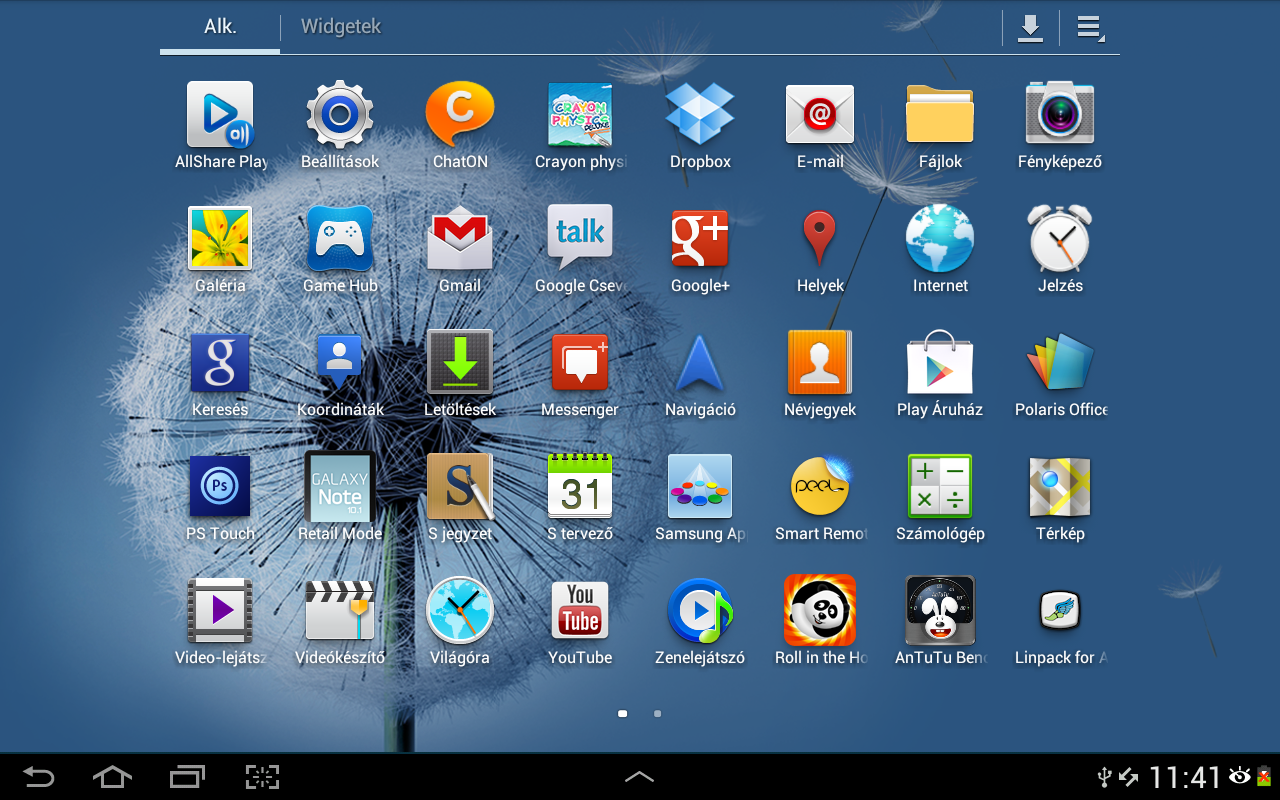 A képernyőkön összesen 40 ikonnak van hely, amelyek állított helyzetben teljesen ki is töltik a képernyőt. Amennyiben a Galaxy Note 10.1-et fektetve használjuk, bal és jobb oldalt egy vékony csík szabadon marad – erre valószínűleg azért volt szükség, hogy a Samsung jobban tudja optimalizálni a kezdőképernyők tartalmát fekvő és állított helyzetre is. A képernyőkre a widgetek és ikonok mellett mappákat is kihelyezhetünk, ami kiváló szolgálatot tehet, ha csoportosítani szeretnénk néhány programot. Widgetből alapesetben 40 darab áll rendelkezésre.
