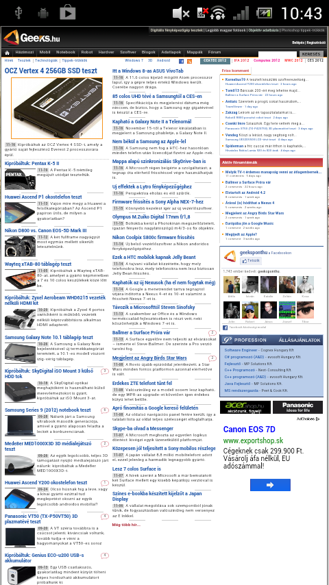 A böngésző képességeit korábban már unalomig ismételtük, így csak nagyvonalakban: Flash nincs, de ezt leszámítva a renderelés és a weboldalak megjelenítése pontos, egyszerre pedig több weblapot is megnyithatunk. A legnagyobb kérdés leginkább az volt, hogy vajon a processzor bírja-e a terhelést, és meglepő módon a válasz az, hogy gyakorlatilag igen.