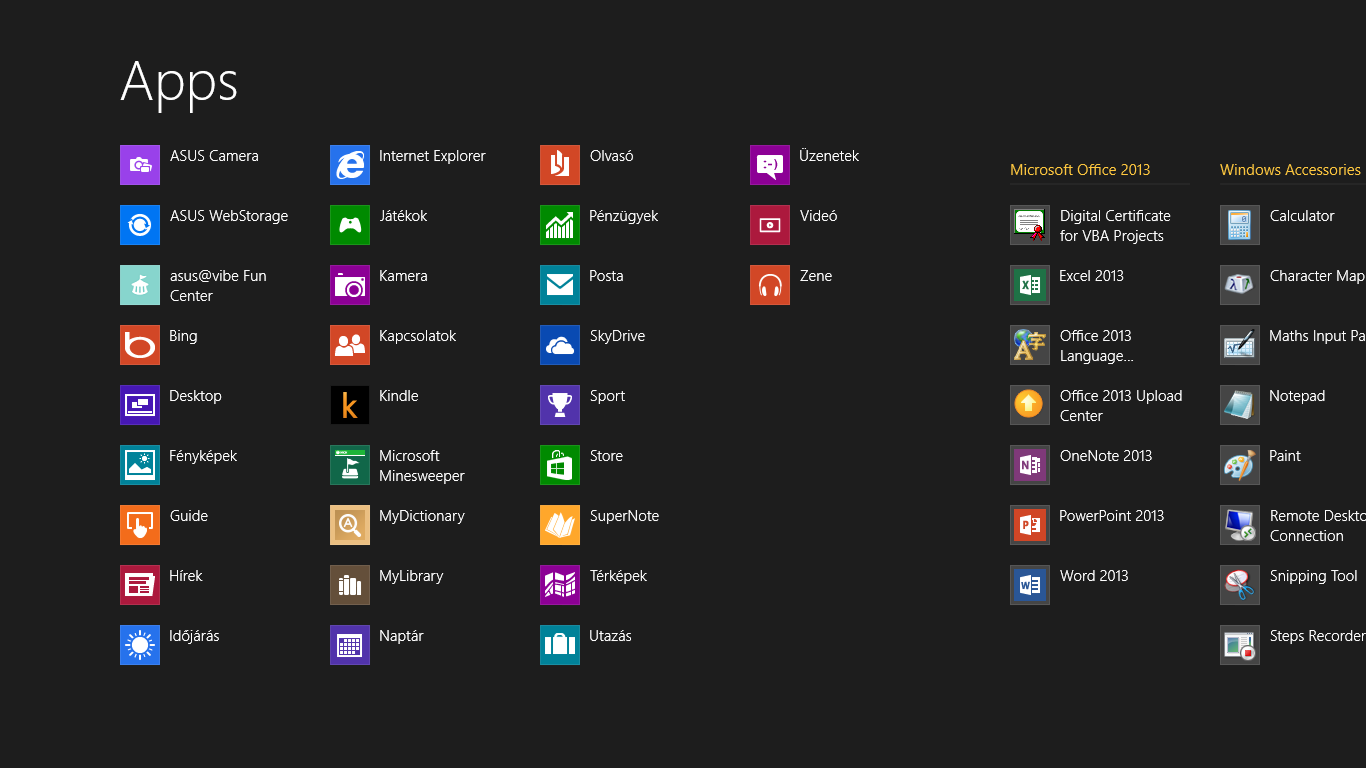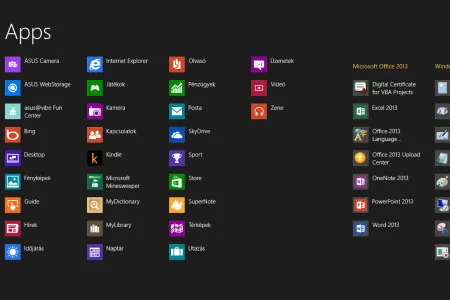 Aki használt már Windows 8-at, a fentiekből sejtheti, hogy a Windows RT kezelőfelülete gyökeresen eltér az Android OS illetve az iOS kezelőfelületétől (ami nem jelent feltétlenül rosszat, sőt). Eltér például azért, mert nincsenek kezdőképernyők – egyetlen, nagy, egybefüggő felületet kapunk, amelyre tetszőlegesen helyezhetjük ki a programokat jelképező csempéket. A felületen a csempéket tetszőlegesen csoportosíthatjuk, a képernyő mérete pedig gyakorlatilag bármekkora lehet – a felület a kihelyezett ikonok számával együtt dinamikusan nő vagy csökken. A csempék közül természetesen törölhetünk is, és arra is van mód, hogy újakat vegyünk fel – az összes telepített alkalmazást pedig úgy érjük el, ha a Start képernyőn elérhető helyi menüben (azaz a lentről behúzható menüben) az All apps gombra kattintunk.