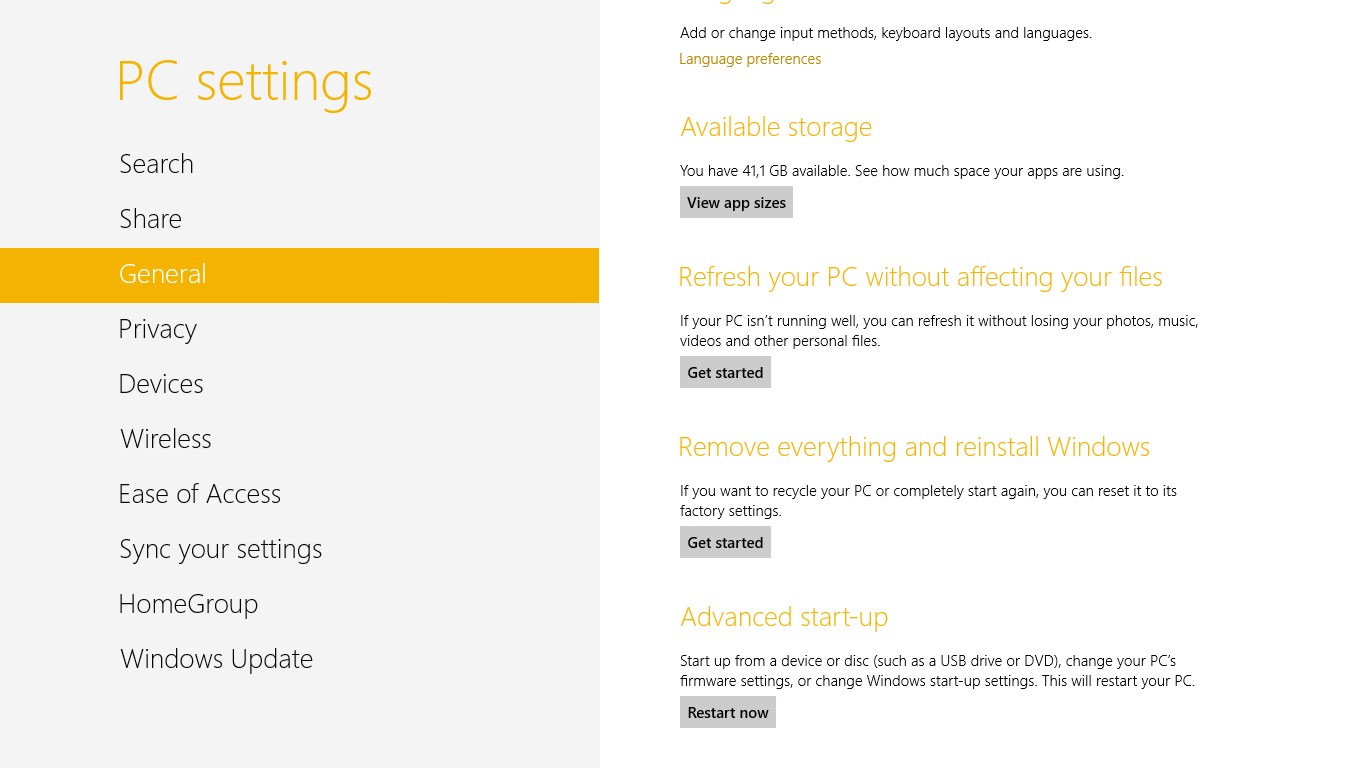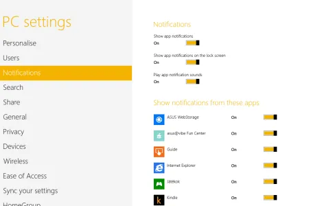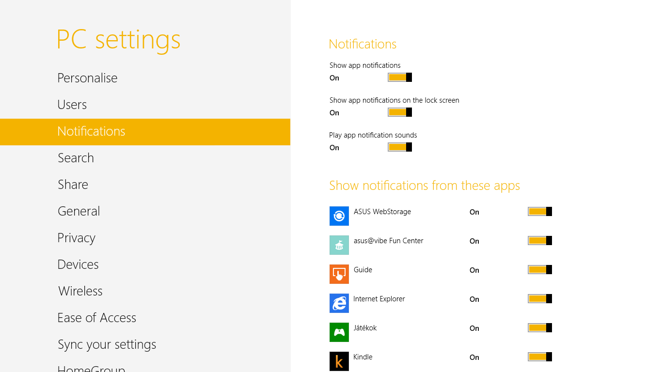 Az alapvető beállításokat a kezdőképernyőn a nevünkre, majd a kép megváltoztatása opcióra kattintva érhetjük el (vagy a jobbról besimítható eszköztár segítségével is); itt minden olyan működési paramétert megváltoztathatunk, ami egy táblagép esetében fontos: személyre szabhatjuk a lezáró képernyőt, a hátteret, beállíthatjuk az értesítéseket. Megadhatjuk azt is, hogy a rendszer milyen adatokat indexeljen, milyen fájlokat osszon meg, hogyan kezelje a személyes adatokat, és természetesen a nyelvi/regionális opciók is változtathatók. Hozzáadhatunk eszközöket, beállíthatjuk a WiFi-t, illetve természetesen azt is, hogy a rendszer milyen adatokat szinkronizáljon.