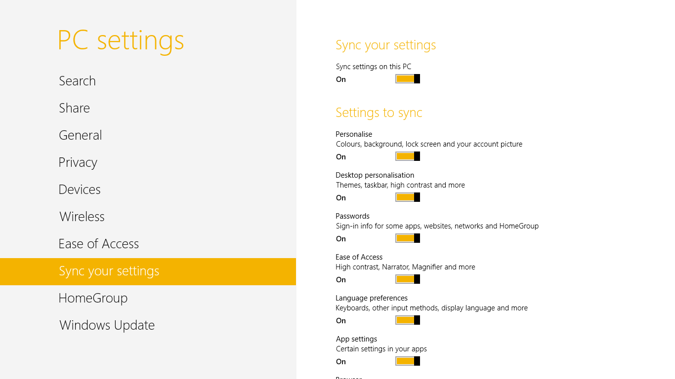 A Windows RT egyik legnagyobb előnye ugyanis az lehet a konkurensekkel szemben, hogy a Windows 8-cal egy sor beállítást tud szinkronizálni, akár a megjelenési beállításokat, az Internet Explorerben tárolt jelszavakat, a Windows és más alkalmazások beállításait is mindig naprakészen tarthatjuk. A Windows RT támogatja a Windows 7-tel bevezetett otthoni csoportokat is, így az otthoni hálózaton lévő más gépekkel könnyedén, jelszó beírása nélkül is cserélhetünk adatokat. A történethez hozzátartozik az is, hogy a Windows RT a Windows 8-hoz hasonlóan támogatja a DLNA megosztást is.