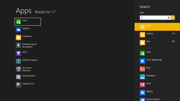 A találatok közül sajnos mindig csak a programlistában lévő eredmények látszanak, így előfordulhat, hogy látszólag nem kapunk találatot – holott a beállítások között vagy éppen valamelyik programon belül több is van.