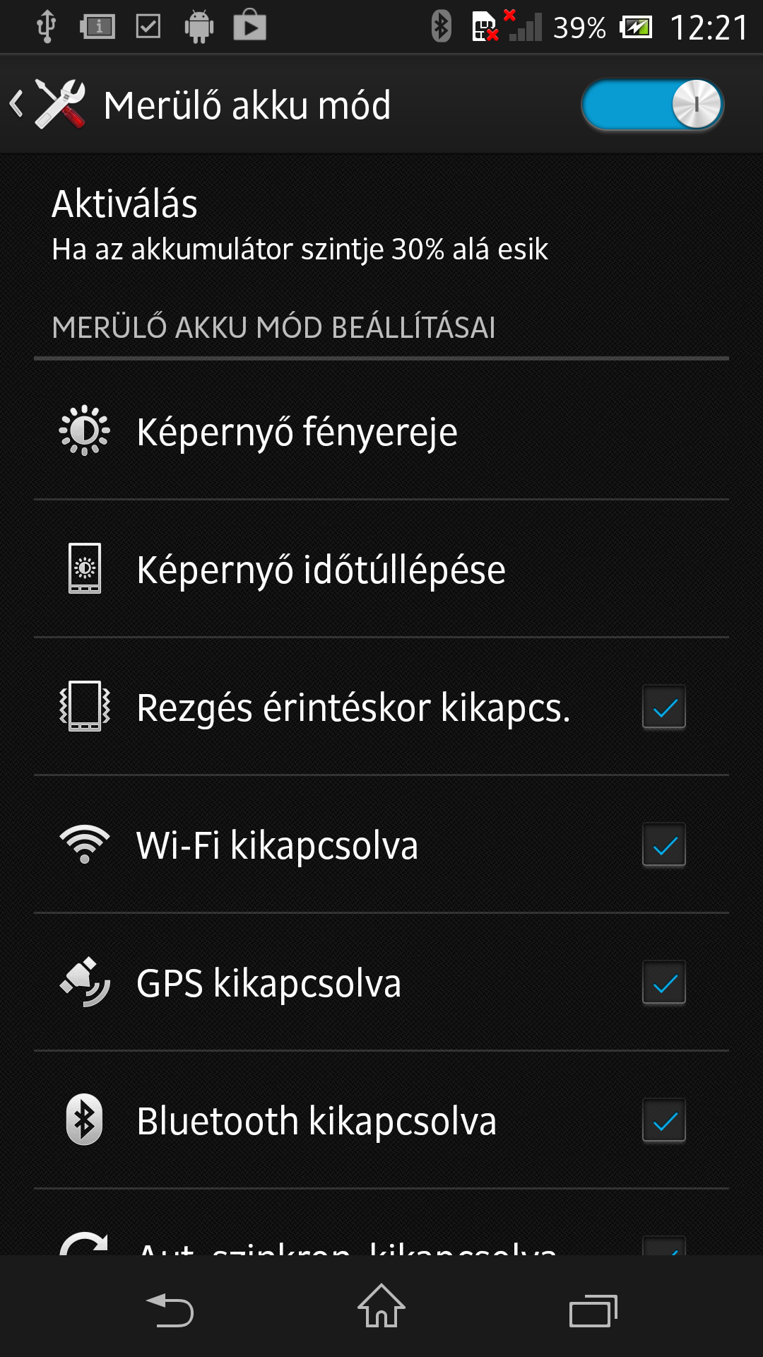 Szép is, jó is, de meddig megy? Mivel az okostelefonok általában nem bírják tovább egy napig, ez nagyon fontos kérdés. A Sony az Xperia Z-be egy 2330 mAh-s akkumulátort épített, amely nem kicsi, de az egy-két évvel ezelőtti telefonokhoz viszonyított előnyt bőven elviszi az 5 colos kijelző és a négymagos rendszerchip. Ebből talán már kitalálható, hogy az Xperia sorozat idei csúcsmodellje is csak egyetlen napot tud biztonságosan túlélni, szinte biztos, hogy minden este töltenünk kell majd, hogy másnap a meglepetéseket el tudjuk kerülni. Hogy az üzemidőt minél jobban el tudjuk nyújtani, a Sony több okos lehetőséget is beépített; ezeket az Energiagazdálkodás menüből érhetjük el.