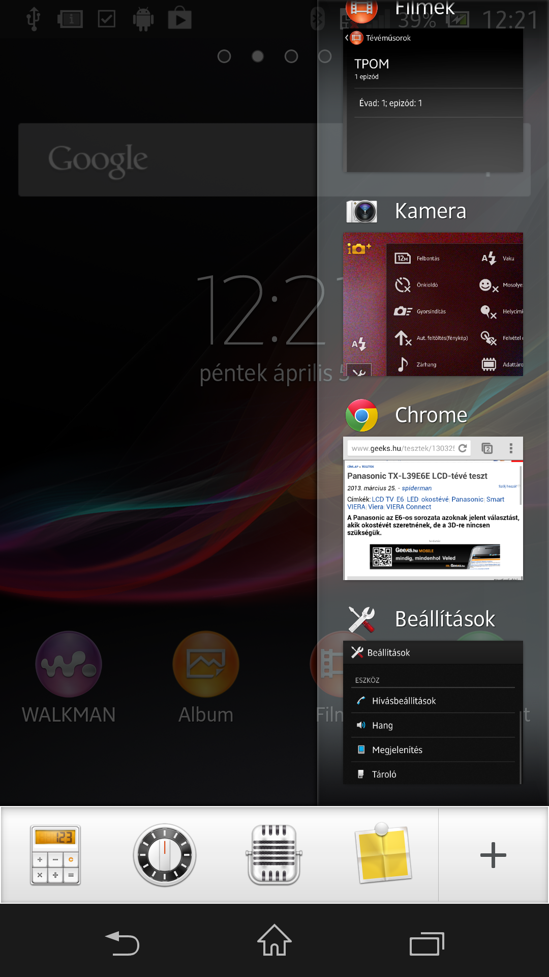Az Xperia T-ben jelentek meg a Sony ablakban futó minialkalmazásai, amelyek a feladatkezelőből indíthatók, és elsősorban akkor tehetnek jó szolgálatot, ha úgy akarunk mondjuk egy feljegyzést készíteni, hogy közben nem lépünk ki a böngészőből. Egyelőre négy alkalmazást használhatunk ilyen módon: a jegyzettömb mellett egy számológépet, egy időzítőt és egy hangrögzítőt.