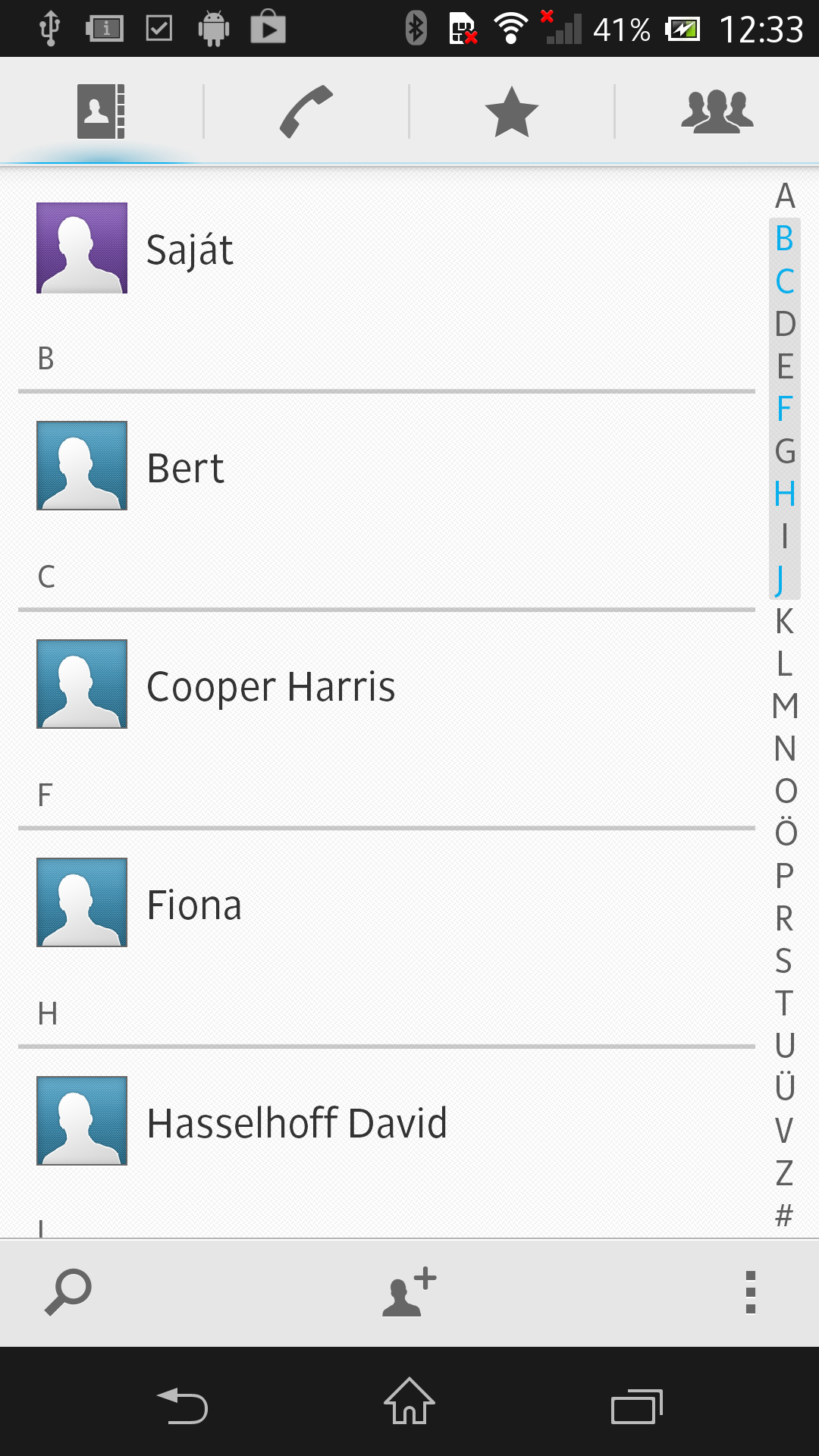 A Sony az alap, telefonáláshoz szükséges alkalmazásokon nem sokat változtatott, de már eddig is teljesen komplett csomagot kaptunk, így ez természetesen nem jelent semmi gondot. A Kapcsolatok alkalmazáshoz nem férünk hozzá közvetlenül, mert alapesetben nincsen parancsikon a főképernyőn, de ezt egyrészt pótolni sem nehéz, másrészt a telefon részlegből is egyetlen kattintásra vannak csupán kapcsolataink. Az Xperia Z Google és Facebook fiókokból is tudja importálni a kontaktokat, és ezeket a fiókokat később természetesen folyamatosan karban is tartja. A Kapcsolatok alkalmazásból a névlistán kívül a hívásnaplót és a csoportokat is elérjük külön, a gyorskeresésben pedig a jobb oldalt elhelyezett betűoszlop segít – de természetesen működik a Smart Dial funkció is. Az SMS-eket a telefon a megszokott, párbeszédes formában jeleníti meg. A teszt során a hangminőséggel nem volt problémánk.
