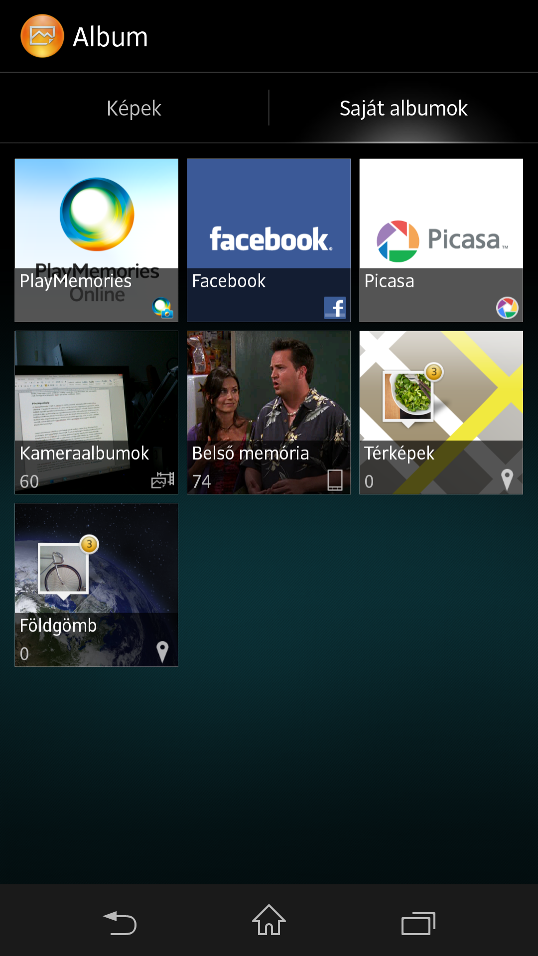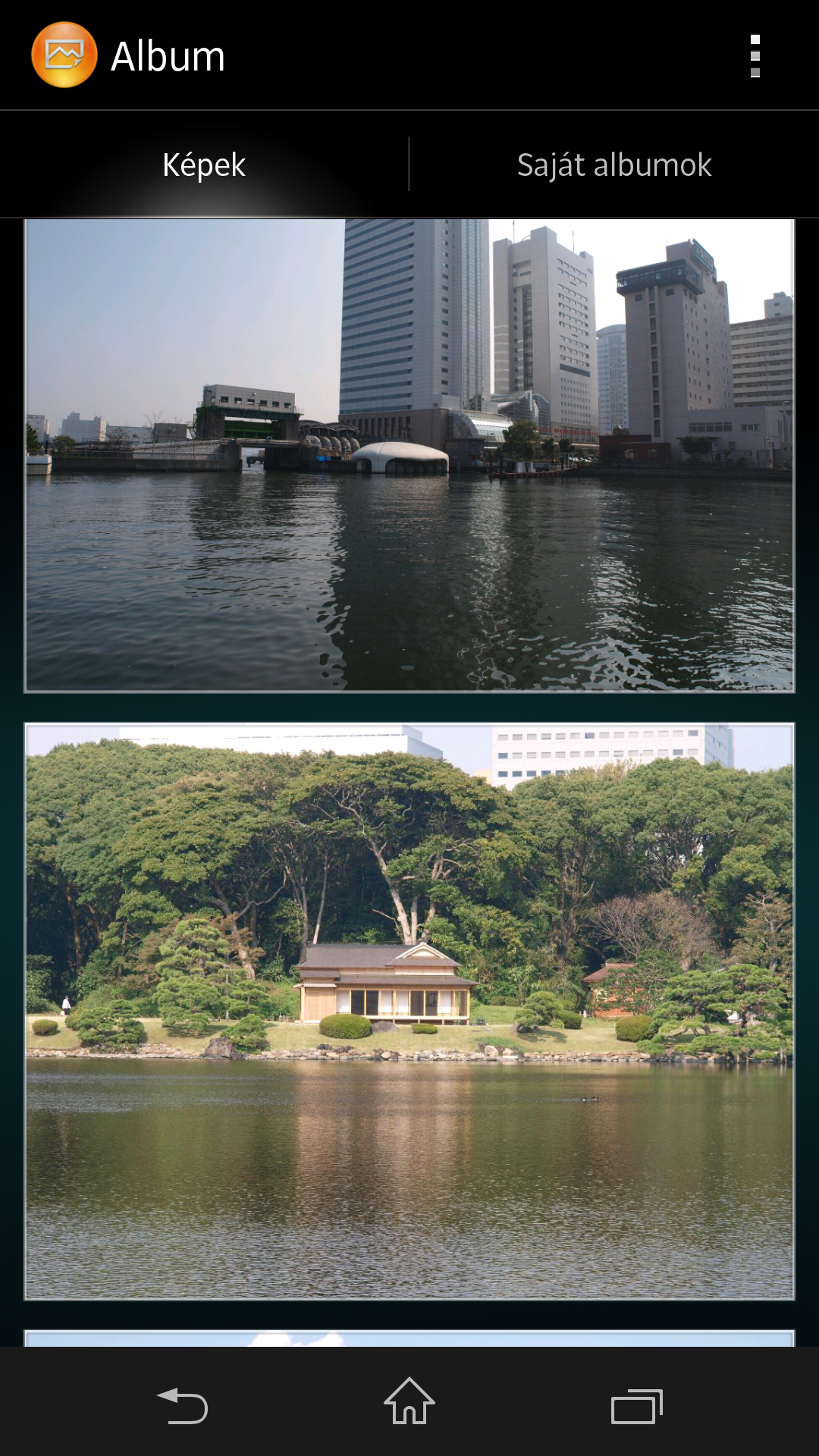A galériát leválót Album mappa és időrend alapján egyaránt képes a fotók megjelenítésére. Ha egy konkrét képet keresünk, akkor sokat segíthet, hogy az időrendi nézetben minden fotó előnézeti képe látszik – igaz, nem túl nagy méretben. A hardveren a képnézegetés értelemszerűen villámgyors, bár az nekünk továbbra is zavaró, hogy a képernyőre méretezett fotókat a telefon kétszer rajzolja ki, először gyorsan, másodszor nagyobb részletességgel. Az alkalmazás emellett képes térképen is megjeleníteni a fotókat, vagyis megmutatni, melyik fotó hol készült.