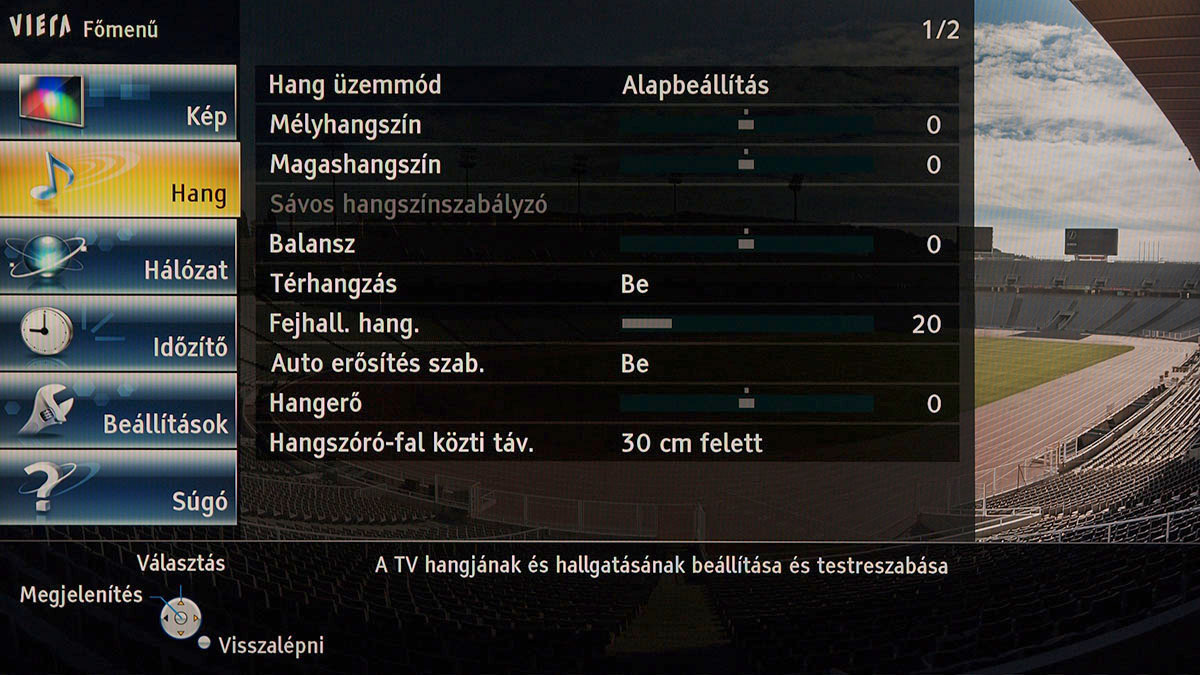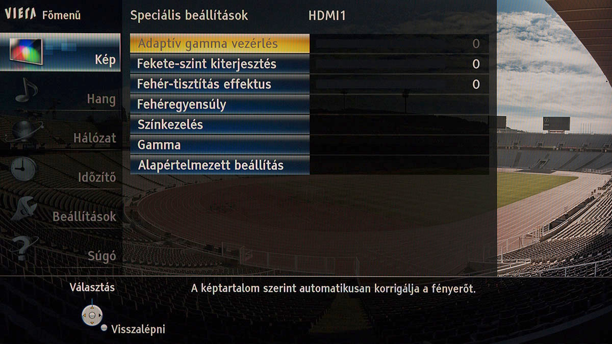 A Panasonic a menürendszer felépítéséhez nem nyúlt, a dizájn alapvetően maradt a tavalyi. Új funkciók viszont szép számmal kerültek a tévébe, főleg, ha azt is hozzávesszük, hogy a Panasonic korábban a finombeállítási lehetőségeket csak a felső- és csúcskategóriás modellek számára tartogatta. Az alapvető képjellemzőkön kívül állítható a háttérvilágítás erőssége, van CMS, fehéregyensúly és gamma is (utóbbi kettő akár 10 pontos részletességgel is változtatható, ami tavaly csak az abszolút csúcsmodelleknél volt elérhető funkció), valamint bekapcsolható a 1080p Pure Direct üzemmód is.