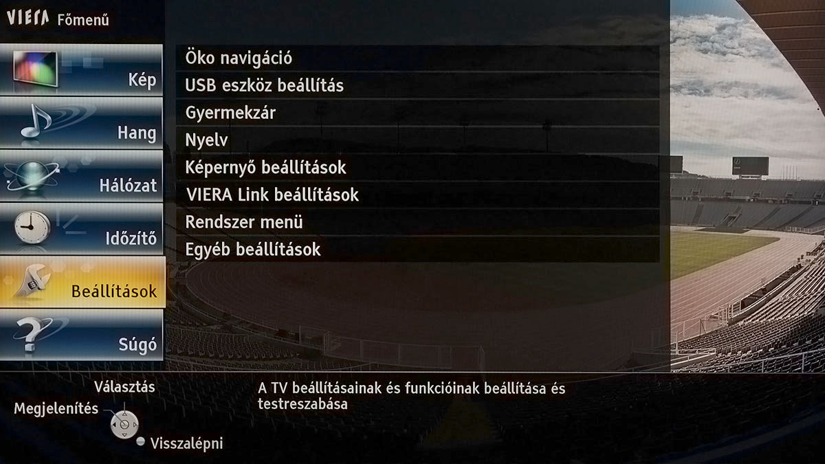 A rengeteg paramétert a Panasonic igyekezett egyszerűen tálalni, de ez nem mindig sikerült (a Kép menüben például Speciális beállítások, Opció beállítások és Képernyő beállítások almenü is van, és nem egyértelmű, hogy egy-egy opció melyikbe került) – viszont ezzel együtt a funkcionalitás kiváló, a Panasonic végre nincsen lemaradásban a versenytársak hasonló árú/kategóriájú készülékeivel szemben. A menüben néhány hasznos kényelmi megoldást is találtunk, a kézikönyv elektronikus formátumban például közvetlenül is elérhető, valamint mód van arra is, hogy a jónak ítélt beállításokat minden jelforrásra átmásoljuk (alapesetben a TX-L47ET60E minden bemenethez azonos profil használata esetén is teljesen egyedi beállításokat rendel).