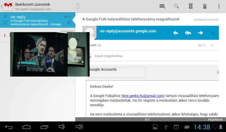 Ezenkívül arra is van lehetőség, hogy a programot ablakos módba küldjük; ilyenkor a lejátszás egy változtatható méretű és helyzetű ablakban megy tovább, így a tabletet filmnézés közben nyugodtan használhatjuk mondjuk internetezésre. Bár a beépített kijelző nem HD felbontású, a tablet akár a Full HD videókat is le tudja játszani, amelynek értelmet ad, hogy a HDMI kimeneten keresztül 1920×1080 pixeles kijelzőket is meghajthatunk segítségével. A táblagép a következő formátumokkal boldogul: