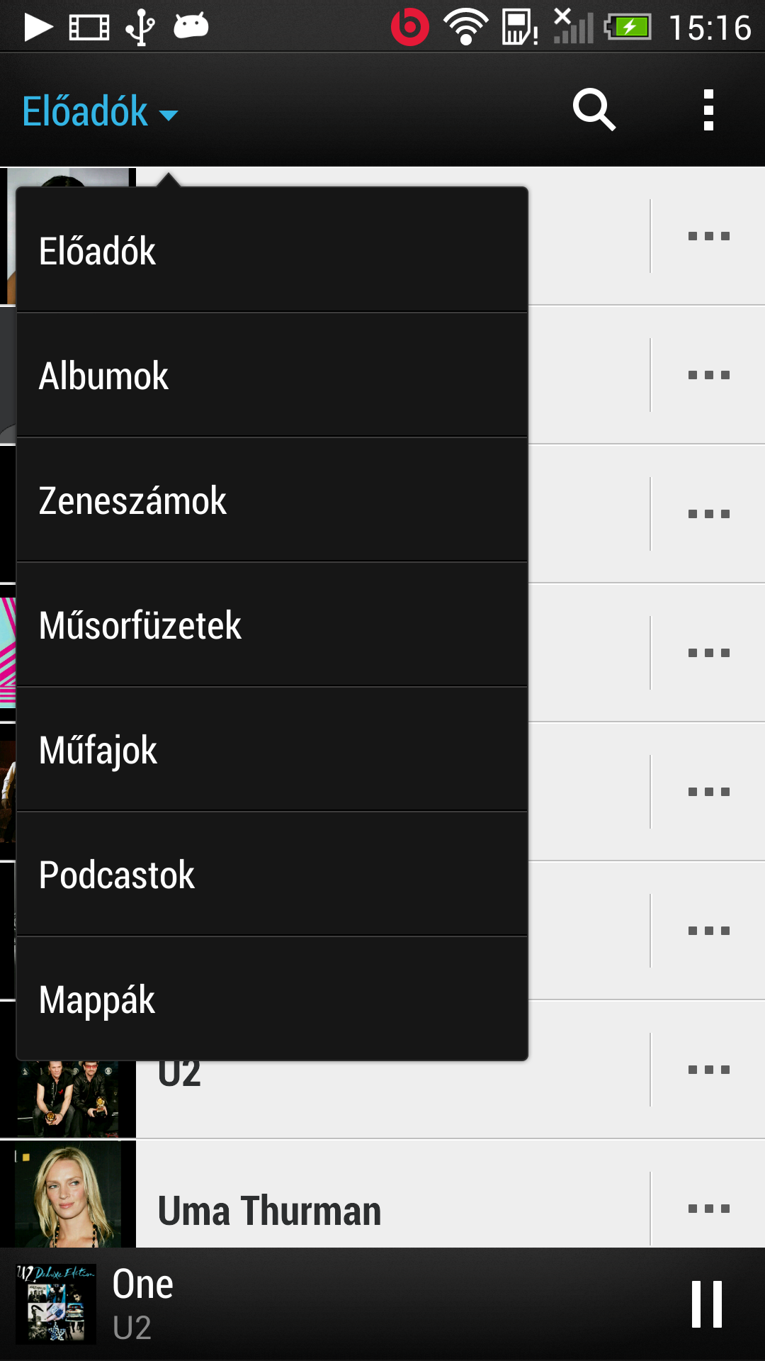 A SoundHound a zeneszámok „hallás utáni” felismerésére képes, találat esetén pedig információkat is kérhetünk a dalról, valamint kereshetünk dalszövegre illetve kapcsolódó YouTube videókra is. A zenelejátszóhoz nem tartozik equalizer, viszont a beatsaudio a (sztenderd) menüből aktiválható. A HTC-től megszokott módon a zene widget a lezáró képernyőn is látszik – és természetesen használni is tudjuk itt. A beállítások között a hálózaton elérhető DLNA klienseket is megkereshetjük, illetve csatlakoztathatunk Bluetooth hangszórókat is. Akinek esetleg nem jönne be a HTC-s Zene, annak jó hír, hogy a Google-féle Play Zene is megtalálható a HTC One-on.