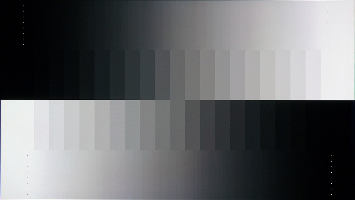 A Gamma az általunk javasolt beállításokkal (azaz lényegében a Professzionális 1 módot kiválasztva) 2,2, ami természetesen csak egy átlag: a sötétebb területeken ennél árnyalatnyit alacsonyabb, a világos területeken pedig magasabb a valódi érték. A részletességre ez szerencsére nincsen nagy hatással, és a szürkeárnyalatos tesztből az is kiderül, hogy a TX-P50GT60 a színárnyalatokkal tényleg minden szempontból remekül bánik. Természetesen, ahogyan a színekre és a fehéregyensúlyra, úgy a gammára is érvényes, hogy mérőműszerrel tökéletesre lehet kalibrálni – kettő vagy akár 10 referenciapont alapján is.