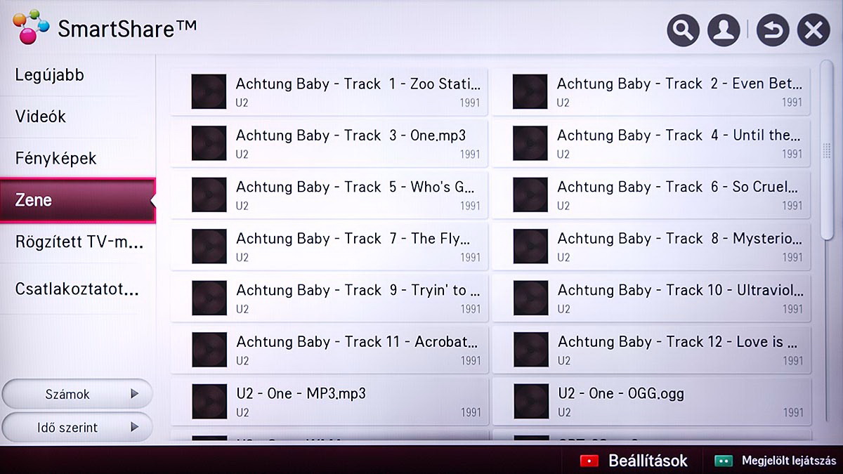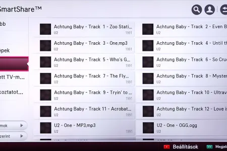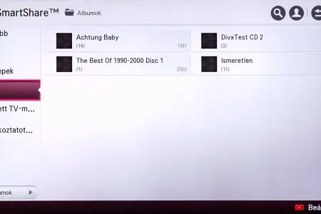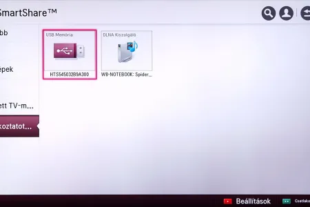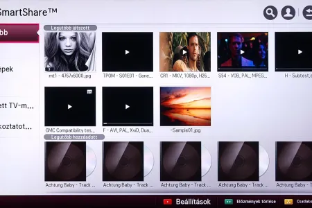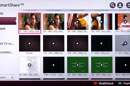 A médialejátszó a Home képernyőről indítható el, és SmartShare névre hallgat. Az LG a különféle források kezelését kiválóan oldotta meg, mert gyakorlatilag a forrástól független, hogyan használhatjuk a médialejátszót. A USB-re csatlakoztatott merevlemezek, a mobil eszközök és a hálózaton (DLNA kapcsolat segítségével) elérhető eszközök (PC, NAS, stb.), mind ugyanazt a felületet használják, sőt, az LG megoldotta azt is, hogy egyszerre több adathordozót is használhassunk. A felület ennek megfelelően változott, nem is kicsit.