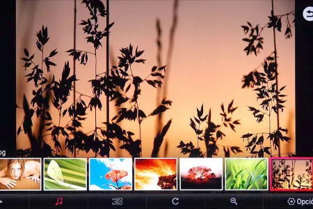 A képfájlok közül a tévé továbbra is csak a JPEG-eket látja, ami elvileg elég is, figyelembe véve, hogy az LG ezt a funkciót alapvetően a családi fotók nézegetésére szánja. A 47LA740S gond nélkül (és gyorsan) megbirkózik akár a 24 MP-es fotókkal is, és képes arra is, hogy a fotókból 3D-s változatot állítson elő (hogy milyen eredménnyel, az már más kérdés). A szokásos alapműveletek mind rendelkezésre állnak, így a fotókat forgathatjuk és nagyíthatjuk is, valamint kérhetünk diavetítést is, akár aláfestő zenével együtt.