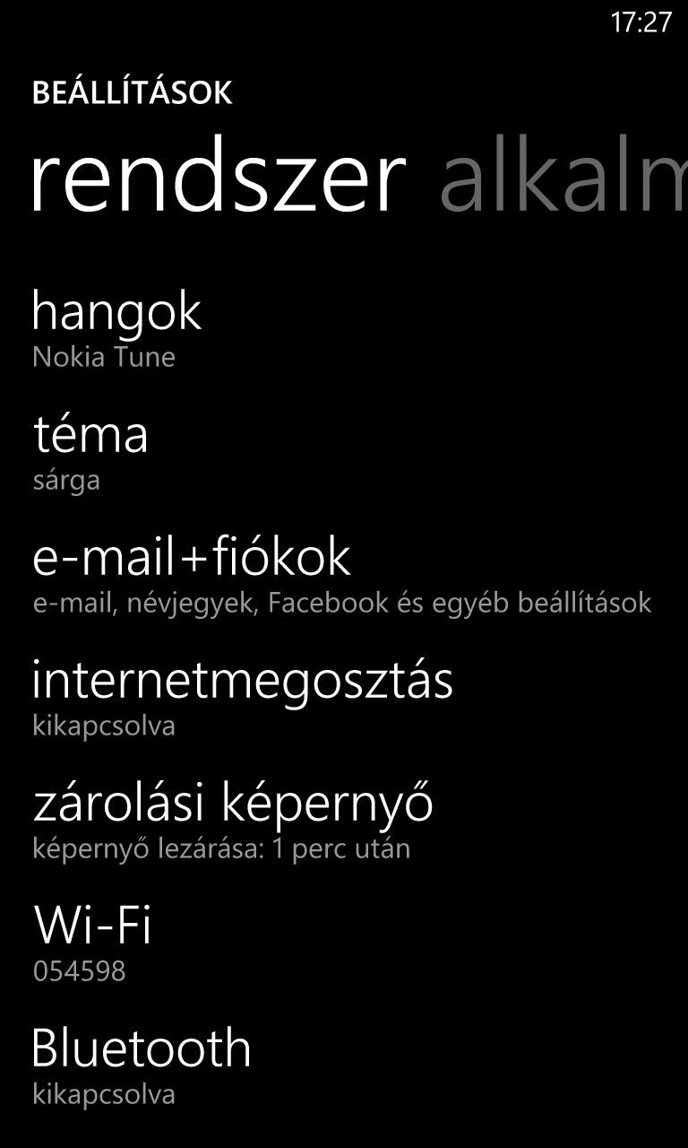 A felület ugyanakkor nem csinosítható kedvünkre, voltaképpen csak arra van lehetőség, hogy a csempék színét megváltoztassuk, illetve, hogy a lezárt képernyő hátterét módosítsuk. A betűméret állítható még, valamint cserélhető a menü hátterének színe – ez utóbbi esetben viszont csak a fehér és fekete színek közül választhatunk.