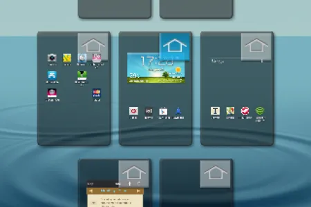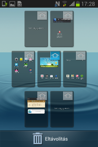Összesen hét kezdőképernyő áll rendelkezésünkre, ezek közül bármelyik lehet az elsődleges, a felesleges paneleket pedig el tudjuk távolítani. Az értesítési tárhely a szokásos információk mellett a Samsung szokásos fix kapcsolópaneljét és a kijelző fényerejének állítására szolgáló opciót is tartalmazza.