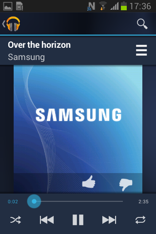 A zenelejátszás rögtön két programmal is lehetséges, mégpedig a Play zene nevű appal (alap Google program) és a Samsung saját lejátszójával. Equlaizer, ismétlési lehetőség, többféle rendezési szempont és az albumborító megjelenítésének lehetősége mindkét alkalmazásnál adott, így választani talán a külső alapján érdemes. Fülhallgató a gyári csomagban nincs, a saját fülesünkkel viszont a készülék szépen szólt. A külső hangszóró is meglepően jól teljesít, kellően hangos és nem is torzít vészesen.