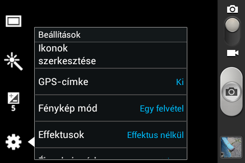 A beállítások között egyébként a fehéregyensúly, a fényerő, az effektusok, az éjszakai mód, az időzítő, a felbontás és képminőség állítható, de a készíthető fotók minőségének ismeretében ezeknek a paramétereknek nincs túl sok jelentősége.