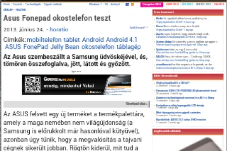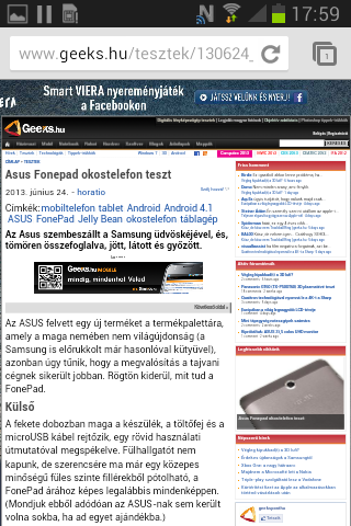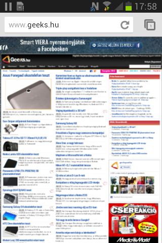 A telefonon leginkább a mobilra optimalizált oldalakat érdemes olvasni, mert a HVGA részletességű kijelzőn egy teljes oldal betöltése esetén a betűk olvashatatlanul picik (és pixelesek)