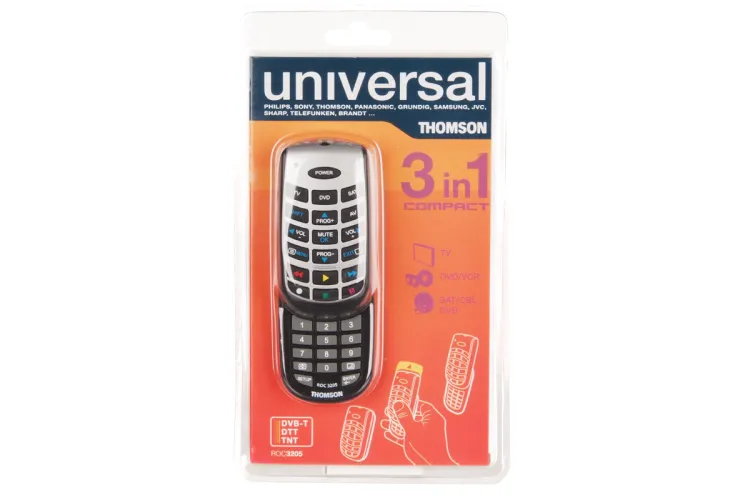 Univerzális távirányítóból már Dunát lehetne rekeszteni annyi fajta és féle kapható. Az egyszerűbb változatok csak előre programozott kódsorozatok kiküldésére alkalmasak, így csupán a gyárilag támogatott készülékekkel használhatók, a komplexebb megoldást kínáló modellek viszont akár taníthatók is. A Hama által forgalmazott, Thomson márkanév alatt megjelent ROC3205 jelű infravörös univerzális távirányító az előre programozottak közé tartozik. Felsorolni is nehéz lenne, mennyi gyártó különféle készülékét támogatja; aki kíváncsi a teljes listára, töltse le a kezelési útmutatót, ebben megtalálható a részletes lista.