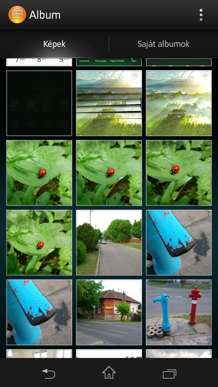 A képeket az Album nevű programmal nyithatjuk meg. A fotók visszanézése gyors, és dinamikusan változtathatjuk azt is, hogy éppen mekkora méretben jelenjenek meg a képek vagy az előnézeti ikonok.