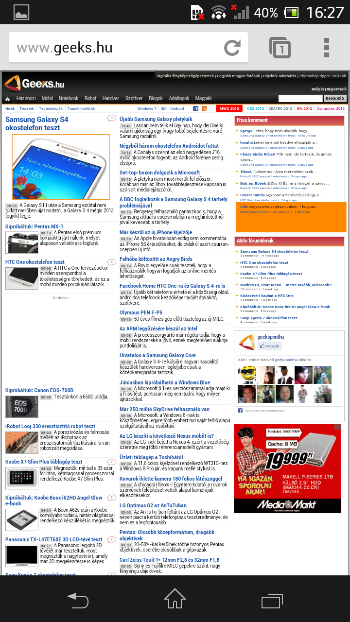 A böngészési élményt nagyban növeli, hogy a kétmagos rendszerchip ellenére az Xperia SP-t semmivel sem éreztük lassabbnak, mint mondjuk a Galaxy S 4-et vagy a HTC One-t. Nemcsak a komplex weboldalak betöltése, hanem az újratördelés és a kicsinyítés-nagyítás is villámgyors volt.