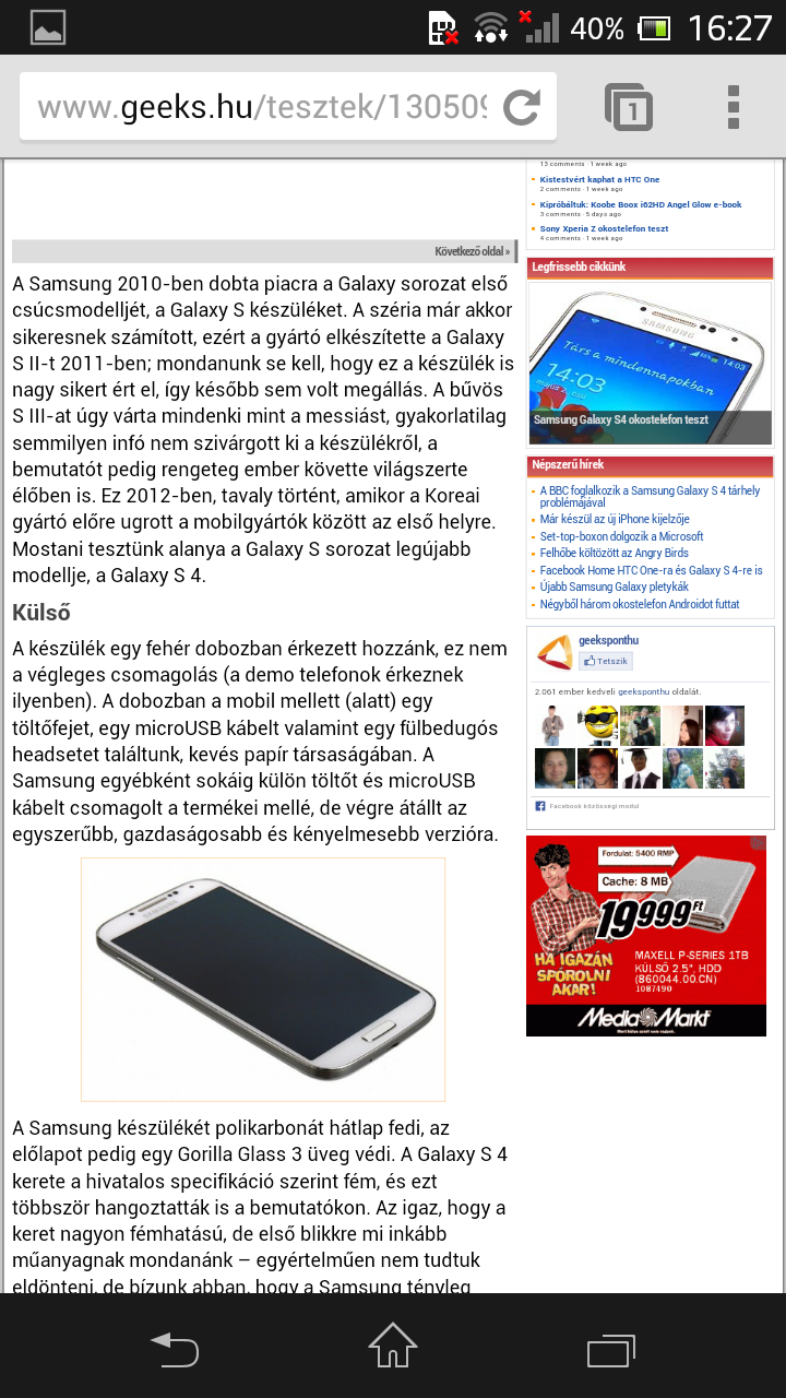 A külső hangszóró viszont biztosan nem a legjobb a mobilok között, egy HTC One után egyenesen csalódás volt hallani.