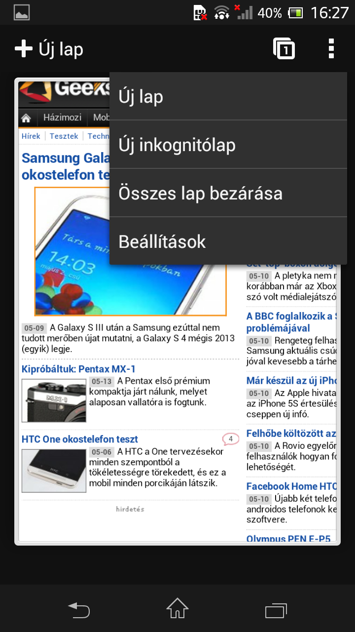 A Sony „jó szokása” szerint saját böngészőt nem ad a telefonhoz, így az Android 4.1-ben gyárilag megtalálható Chrome-ot használhatjuk netezésre (vagy letöltünk más alternatívákat). Ez jó abból a szempontból, hogy a szoftver gyors, több fület is támogat és szinkronizálható az otthoni Chrome-mal is (akár a megnyitott fülek szintjén is), viszont cserébe le kell mondanunk arról, hogy Flash tartalmakat nézegessünk.