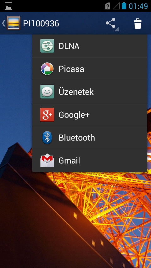 Ahogyan korábban már említettük, a zenelejátszás és képnézegetés közben a megosztási lehetőségek között a DLNA is feltűnik, így a mobillal tudunk a helyi hálózaton lévő kiszolgálókra is multimédiás tartalmakat küldeni.