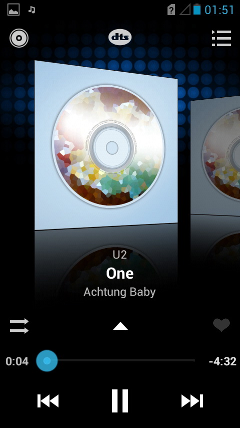 A Huawei próbált kicsit domborítani a multimédia területén, ezt jelzi, hogy a G510 megkapta a DTS logót. A gyakorlatban ez annyit tesz, hogy zenehallgatás közben DTS beállítást is választhatunk, ami elvileg jobb hangminőséget eredményez. Az igazság az, hogy a gyári fülessel ezt nem nagyon lehet kihasználni, egy komolyabb fül- vagy fejhallgató esetében viszont van különbség – hogy jobb-e vagy rosszabb-e az eredményt, azt mindenki döntse el maga.