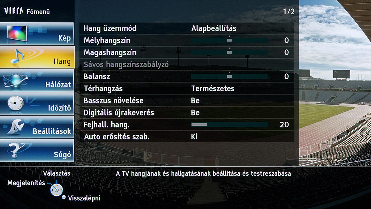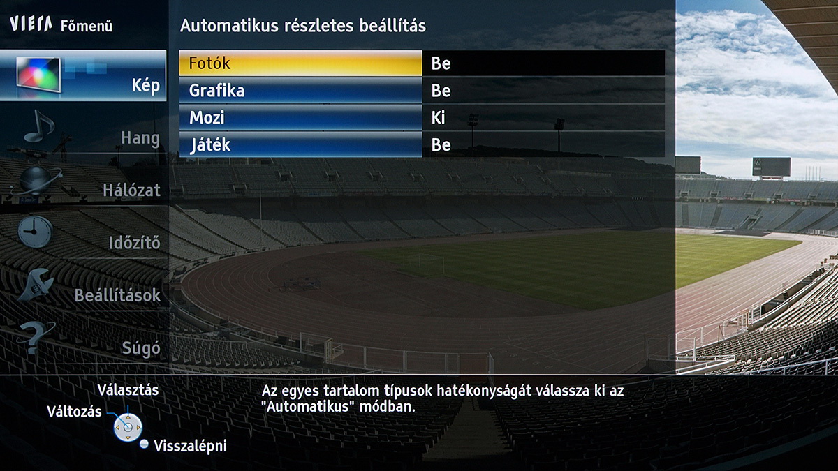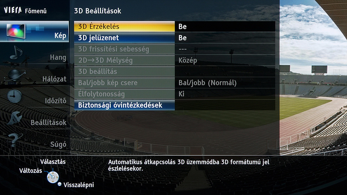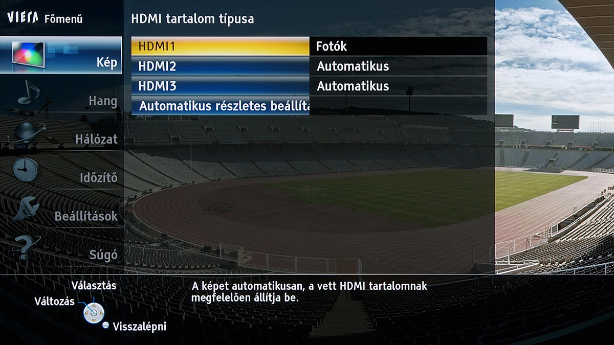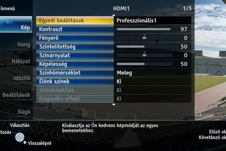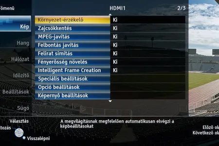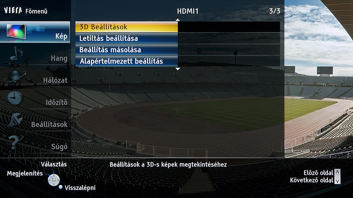 A készülékben a Panasonic saját képfeldolgozó egysége teljesít szolgálatot, amely néhány új trükkre is képes: A Resoltuion Remaster és a Brillance Enhancer például, különböző megközelítésből, a lokális kontrasztot növelik, a Caption Smoother pedig a képernyőn megjelenő feliratokat élesítik – ezek a megoldások azonban szükségszerűen úgy nyúlnak bele a képbe, hogy a színhelyességet és a gammát is rontják, ezért társaikhoz hasonlóan nem ajánljuk használatukat. A menü működése abból a szempontból tökéletes, hogy a paramétereket mindig olyan jellemzőkhöz köti, amelyekhez logikus: a HDMI módbeállítás például színprofiltól független, más paraméterek viszont a profillal együtt változnak, sőt, ha ugyanazt a színprofilt használjuk 2D és 3D módban, akkor adott esetben mindkét üzemmódra külön szettet választhatunk.