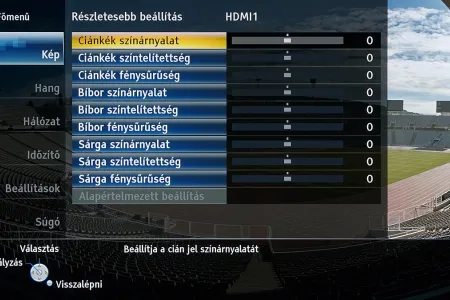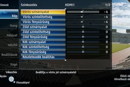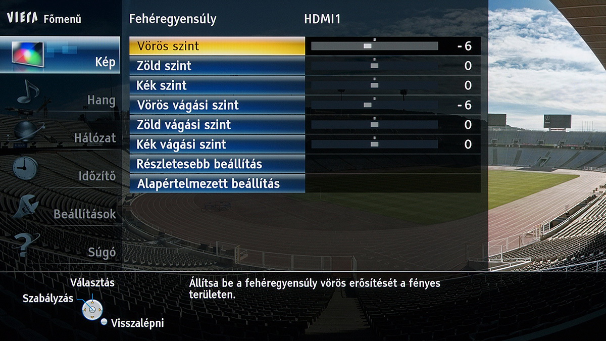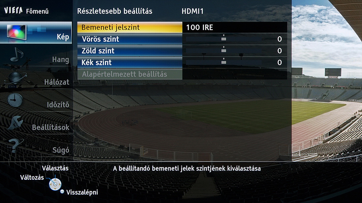 A TX-P55VT60E alapesetben sem nyújt kevés színprofilt, viszont ahhoz, hogy minden részletes beállításhoz hozzáférjünk, a menüben engedélyezni kell az isfccc haladó beállítások megjelenítését is. Ez kettővel növeli a színprofilok számát, de sajnos nem a THX színprofillal egyező beállításokból, hanem a mozi üzemmódból indulhatunk ki.