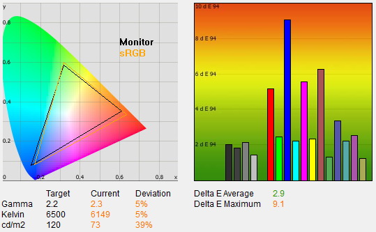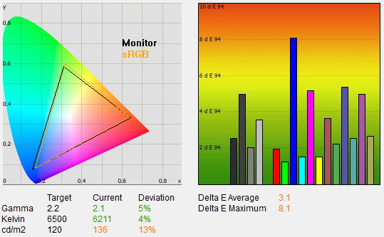 Az talán senkinek sem jelent nagy meglepetést, hogy a normál és a dinamikus üzemmódon nem nyújtanak tökéletes látványt, ezúttal azonban a mozi beállítás sem volt nagyon jó – de ez végül is nem baj, hiszen egy THX színprofillal rendelkező tévének a THX színprofil kiválasztásakor kell igazán domborítania. A TX-P55VT60E ezt szerencsére meg is teszi, 2,3-as gamma, 6400K-s színhőmérséklet, 93 cd/m⊃2-es maximális fényerő, 0,005 cd/m²-es fekete, 19400:1-es kontrasztarány és az sRGB színtér szinte tökéletes lefedése mellett 1,2-es átlagos és 2,6-os maximális deltaE-t kaptunk. Az 1,2-es átlagos érték kiváló, azt jelenti, hogy a megjelenített és az elvárt színek gyakorlatilag egyeznek, a közöttük lévő eltérés szabad szemmel nem látható. Mindez egyébként azt jelenti, hogy az optimális beállításokkal gyakorlatilag meg is vagyunk: elég, ha kiválasztjuk a THX színprofilt. Módosítani persze kell még néhány apróságot (pl. overscant ki kell kapcsolni, a HDMI fekete szintet a forráshoz kell állítani). Ha valaki úgy dönt, hogy a profi beállításokból indulna ki (ami logikus lehet mondjuk akkor, ha az éjszakai mellé kellene egy jó nappali profil is, a THX Bright Room ugyanis nem az), akkor a HDMI tartalom típusa opcióra mindenképpen figyelni kell: alapeseten Auto az értéke, ami azt jelenti, hogy az elektronika felismeri magától a megjelenített tartalom típusát, és ehhez mérten bizonyos képjavító algoritmusokat, például ki nem kapcsolható képélesítést aktivál. Ez inkább rontja, semmint javítja a képet, így értéke mindig legyen „Ki”. Emellett csökkenteni kell a képélességet is, amely 0-10 közötti tartományban optimális.