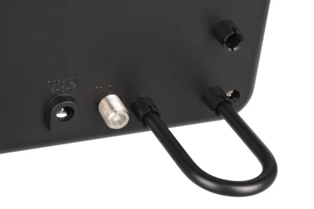 A hátlapra csak az antenna bemenete és a tápcsatlakozó kerültek. Bár a dobozban van egy tápegység is, ezt csak abban az esetben kell használnunk, ha a TV vagy set-top-box tunere nem ad ki 5V-os tápfeszültséget az antenna bemenetére. Az antennára F-csatlakozót szereltek, így ha a dobozban mellékelt 1 méteresnél hosszabb kábelre lesz szükségünk, akkor ilyen végűt kell keresnünk.