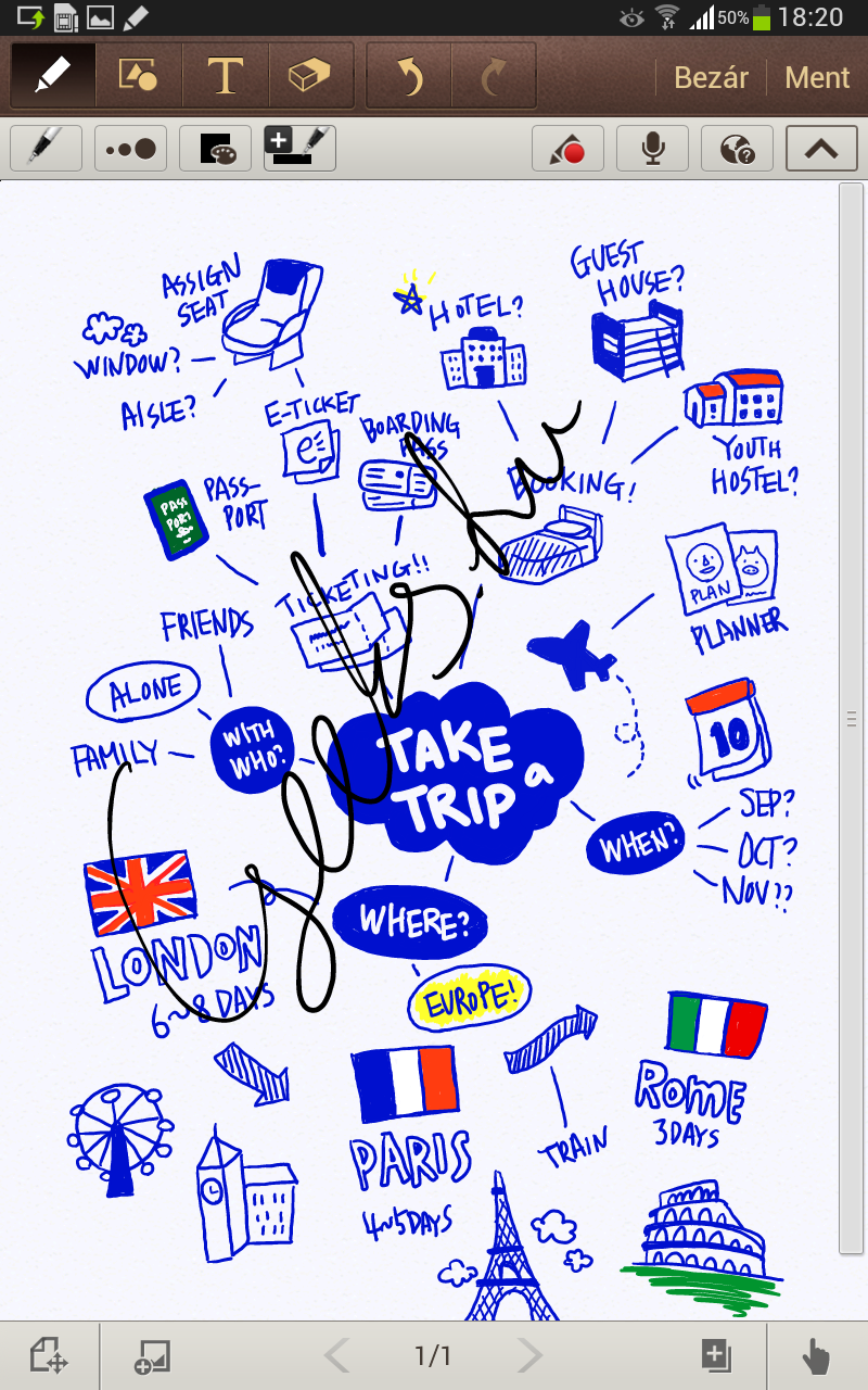 A kezeléshez hozzátartozik, hogy a Note 8.0-t nemcsak az ujjunkkal, hanem az S Pennel is tudjuk vezérelni. A digitális toll nem egy sima stylus: hegye nyomásérzékeny (így például lehet vékony és vastag vonalakat rajzolni vele egyszerűen úgy, hogy kicsit vagy nagyon nyomjuk rá a felületre az S Pent) és működik akkor is, ha nem érintjük hozzá a kijelzőhöz, csak közelítünk felé.
