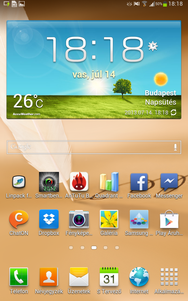 A Galaxy Note 8.0 szoftvere a Note 2 szoftverére hajaz inkább, nem pedig a Note 10.1-ére, de ez mondjuk a telefonálási opció miatt érthető is. A gépen az Android OS fut, egészen pontosan a 4.1.2-es verzió. Ez a kettővel ezelőtti változat, de még nem számít elavultnak. A Samsung ráadásul elég jól követi az Android verziókat, így majdnem biztos, hogy idővel tesztünk alanya is megkapja legalább az Android 4.2-t. A kezelőfelület természetesen nem gyári, hanem a Samsung saját TouchWiz UI-ja, amelyet lassan már minden élő ember ismer. A hardver ismeretében nem meglepő, hogy a felület zökkenőmentesen fut, az animációk is szépek rajta; minden olajozottan megy.