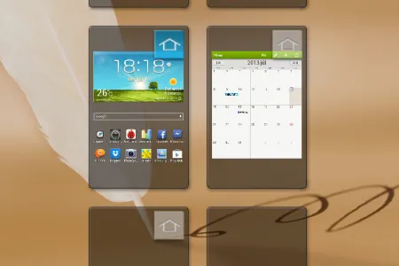 Maximum 7 főképernyőnk lehet, amelyekre rengeteg widget és parancsikon elfér. Az értesítés sáv fentről érhető el; ezen az események mellett a fényerő állítására szolgáló csúszka és a Samsungtól megszokott kapcsológombok is megjelennek. Ebben a készülékben is megtalálható az intelligens képernyőzár, de a Note 8.0 Olvasási üzemmódot is kínál, ezt bekapcsolva a készülék néhány alkalmazásnál olvasáshoz optimalizálja a kijelzőt. Szintén megtalálható az egyszerű kezdőképernyő, számos beállítás kapcsolódik a S Penhez, és gazdagok az energiabeállítási opciók is. Note-ról lévén szó, természetesen arra is van lehetőség, hogy két alkalmazást egymás mellett (osztott képernyőn) futtassunk – ez viszont továbbra sem általános érvényű lehetőség, csak néhány alkalmazás támogatja.