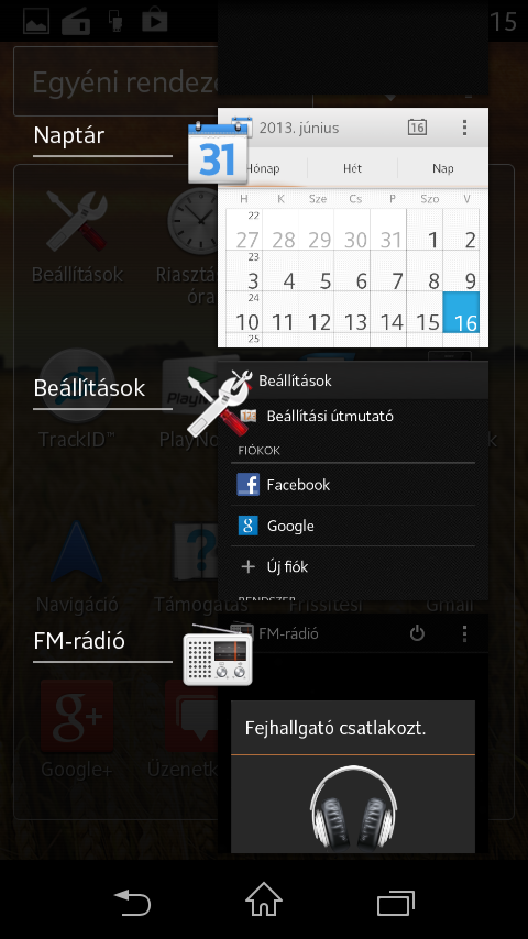 A saját alkalmazások sorát a Music Unlimited nyitja – azaz csak nyitná, ha a Qriocity nálunk is elérhető lenne. Nem az, így a mobillal zenét nem tudunk vásárolni, legalábbis a Sonytól. Ugyanez igaz a Video Unlimited alkalmazásra is. A Zenék, Filmek segítségével Facebookos ismerőseinknek ajánlhatunk zenéket és filmeket, és persze megnézhetjük azt is, ha nekünk ajánlottak valamit. Még mindig a zenéhez kapcsolódik a zenéket a dallam alapján felismerő Track ID is.